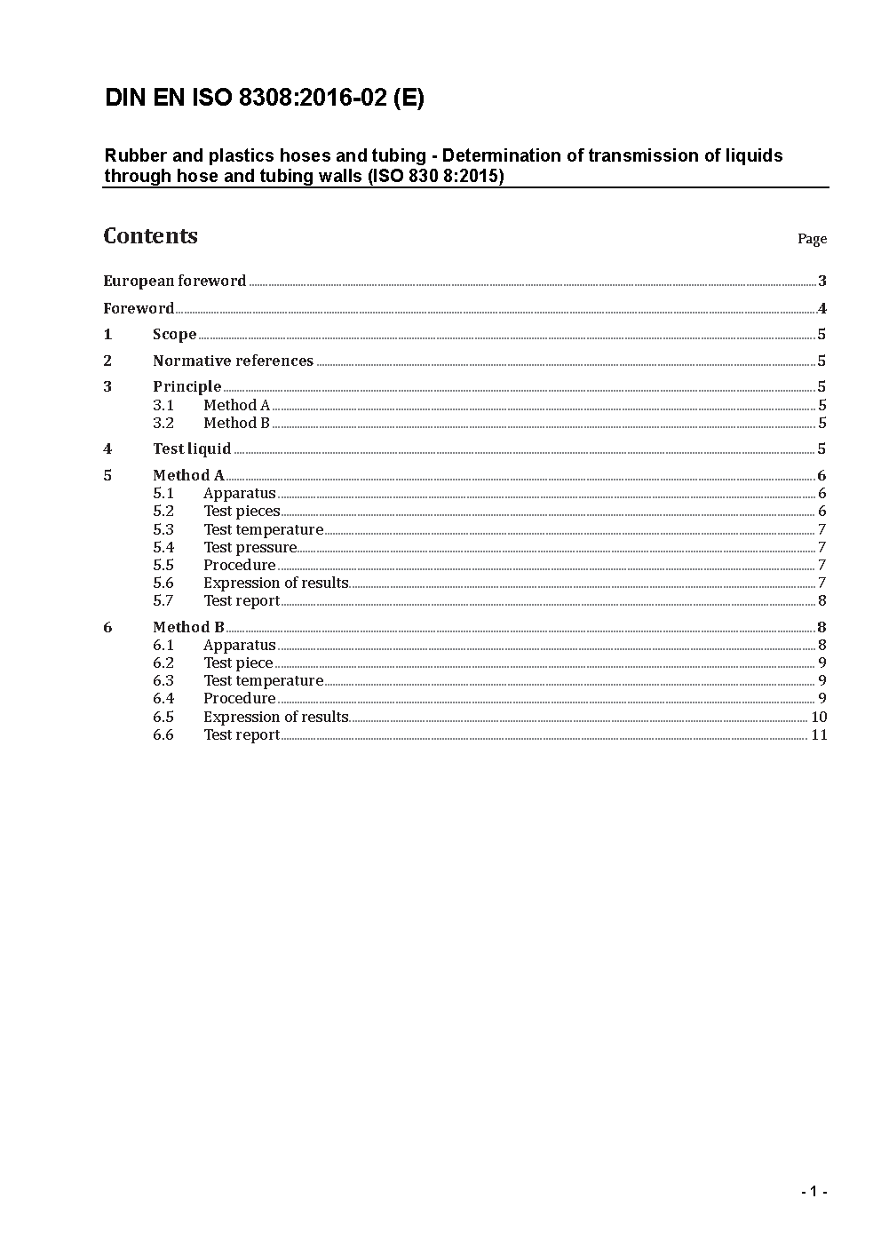 Rubber and plastics hoses and tubing - Determination of transmission of liquids through hose and tubing walls (ISO 8308:2006); German version EN ISO 8308:2008