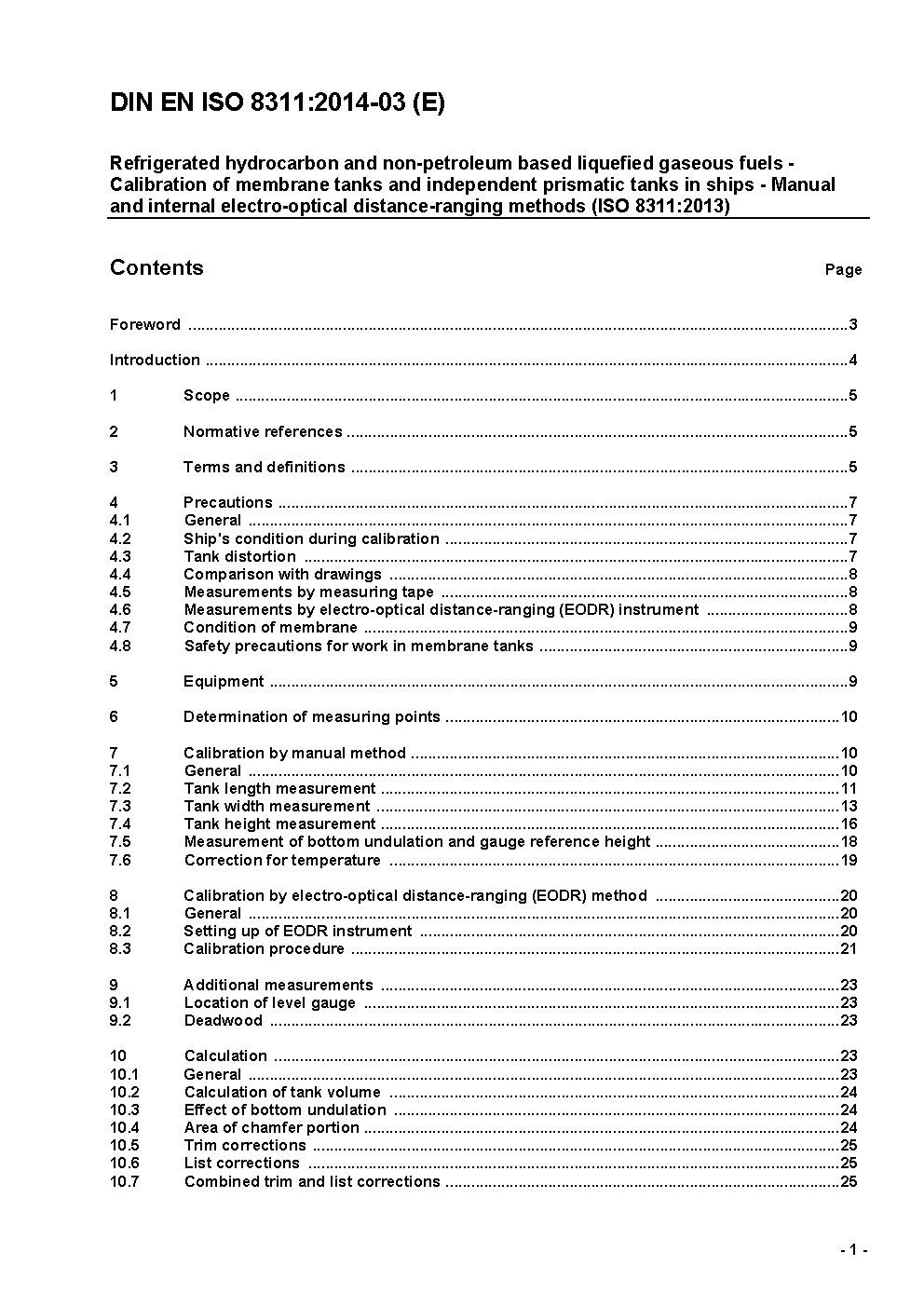 Verflüssigte leichte Kohlenwasserstoffe - Kalibrierung von Membrantanks und unabhängigen Prismentanks in Schiffen - Physikalische Messung (ISO 8311:1989); Deutsche Fassung EN ISO 8311:1995