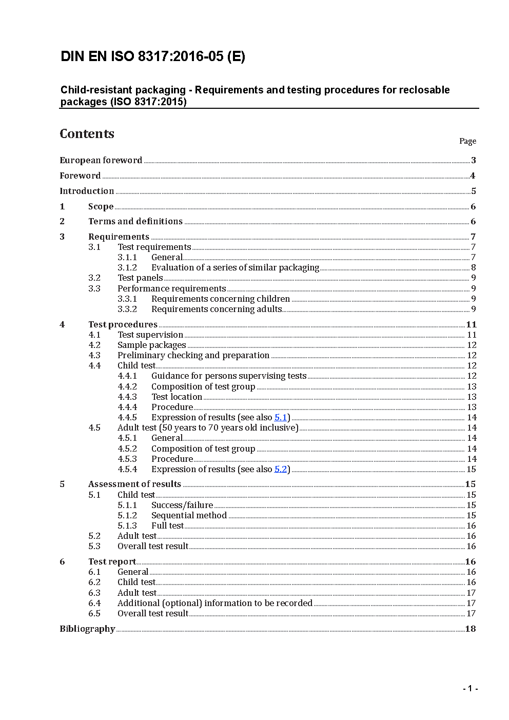 Child-resistant packaging - Requirements and testing procedures for reclosable packages (ISO/DIS:2014); German version prEN ISO 8317:2014