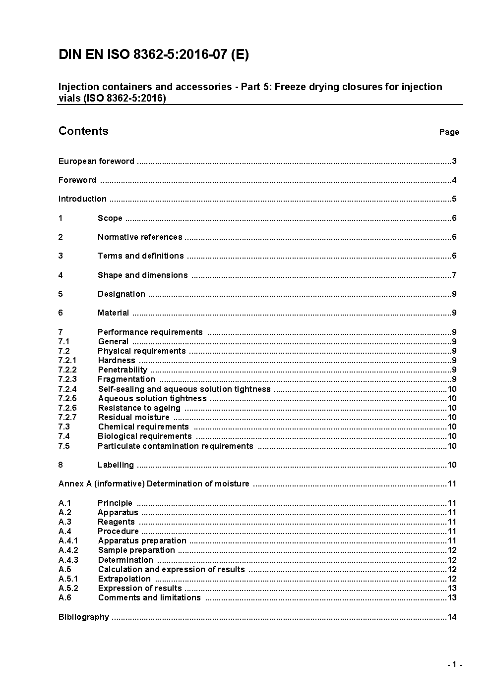 Injection containers and accessories - Part 5: Freeze drying closures for injection vials (ISO/DIS 8362-5:2014); German version prEN ISO 8362-5:2014