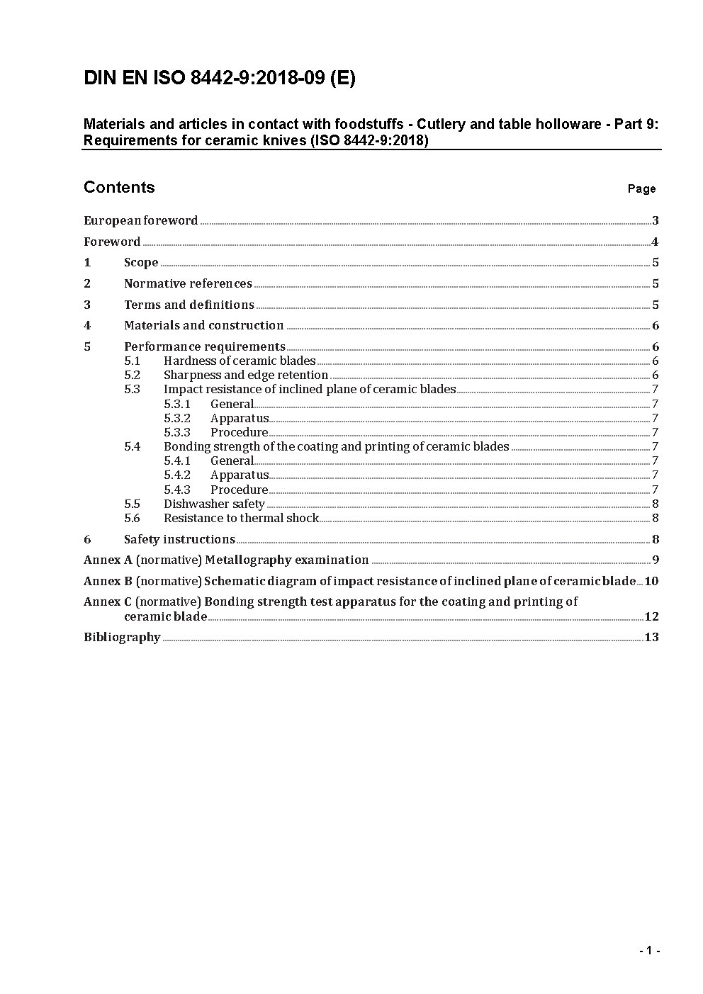 Materials and articles in contact with foodstuffs - Cutlery and table holloware - Part 9: Requirements for ceramic knives (ISO/DIS 8442-9:2017); German and English version prEN ISO 8442-9:2017