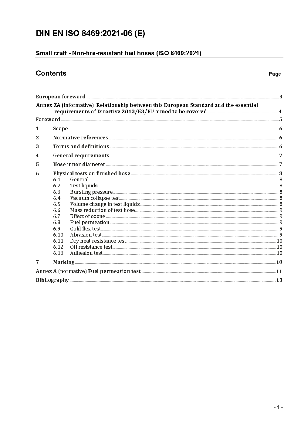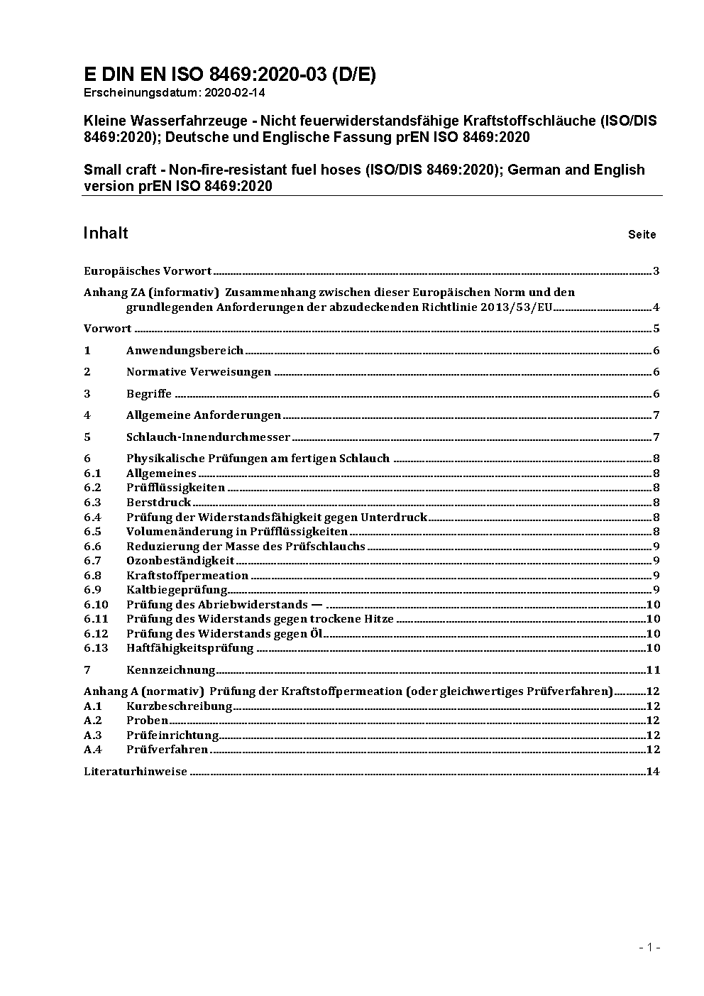 Small craft - Non-fire-resistant fuel hoses (ISO 8469:2006); German version EN ISO 8469:2006