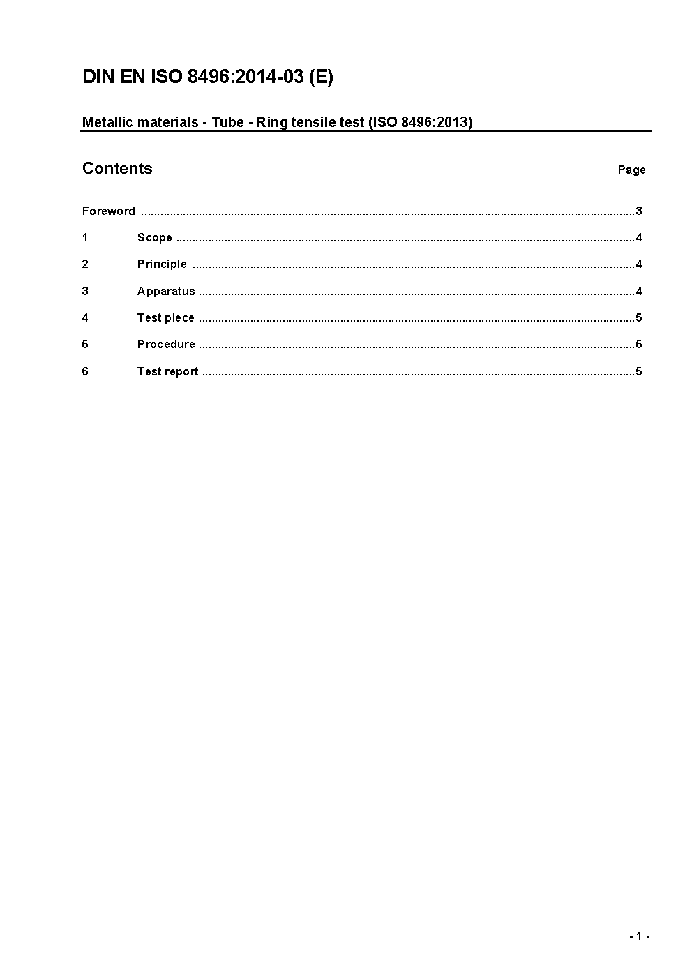 Metallic materials - Tube - Ring tensile test (ISO/FDIS 8496:2013); German version FprEN ISO 8496:2013