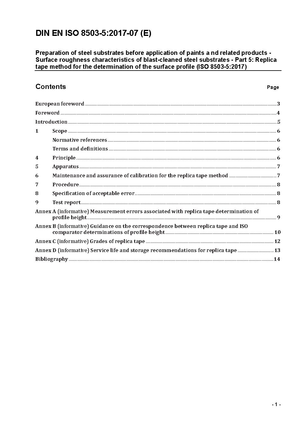 Preparation of steel substrates before application of paints and related products - Surface roughness characteristics of blast-cleaned steel substrates - Part 5: Replica tape method for the determination of the surface profile (ISO 8503-5:2017); German version EN ISO 8503-5:2017