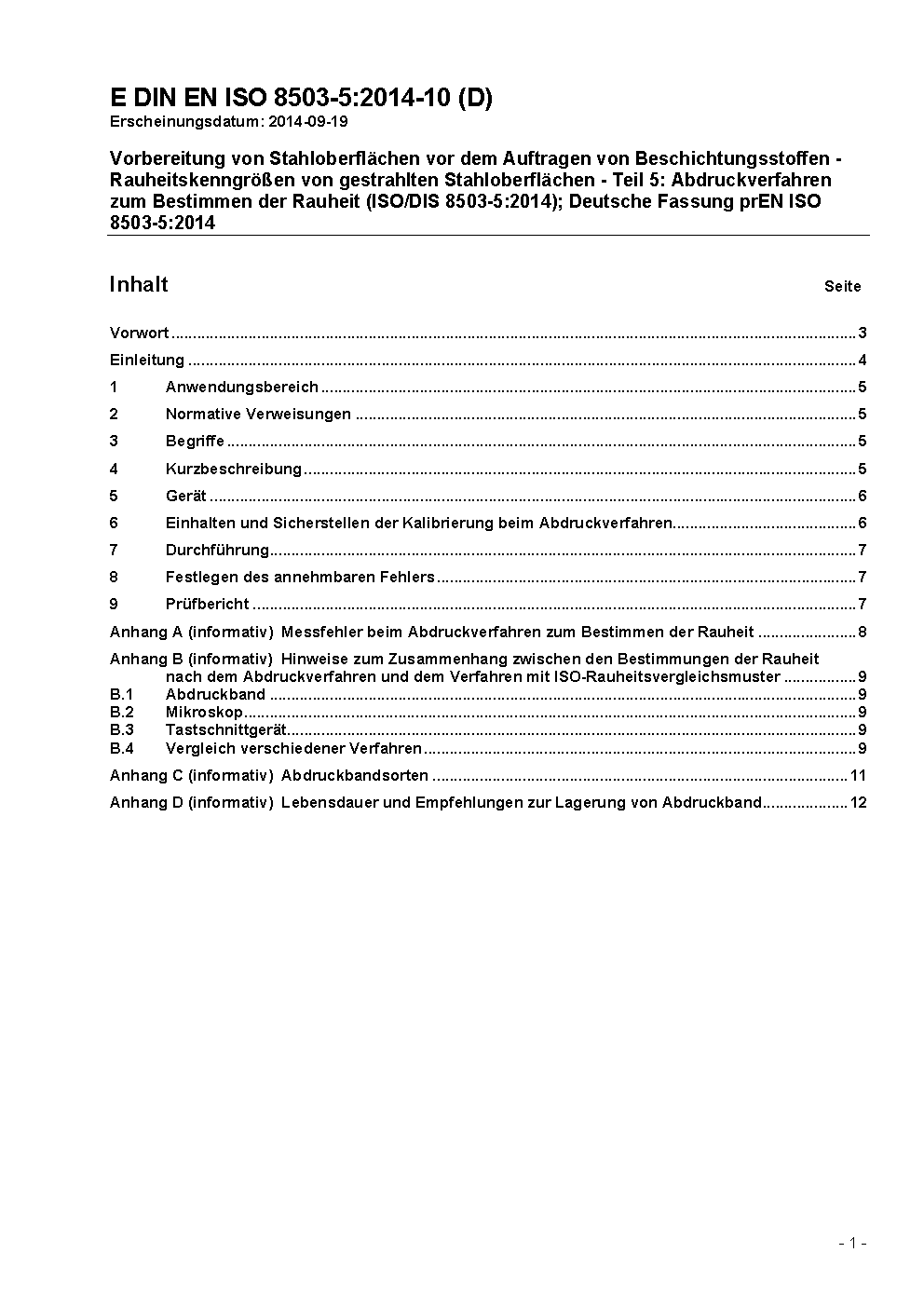 Vorbereitung von Stahloberflächen vor dem Auftragen von Beschichtungsstoffen - Rauheitskenngrößen von gestrahlten Stahloberflächen - Teil 5: Abdruckverfahren zum Bestimmen der Rauheit (ISO 8503-5:2017); Deutsche Fassung EN ISO 8503-5:2017