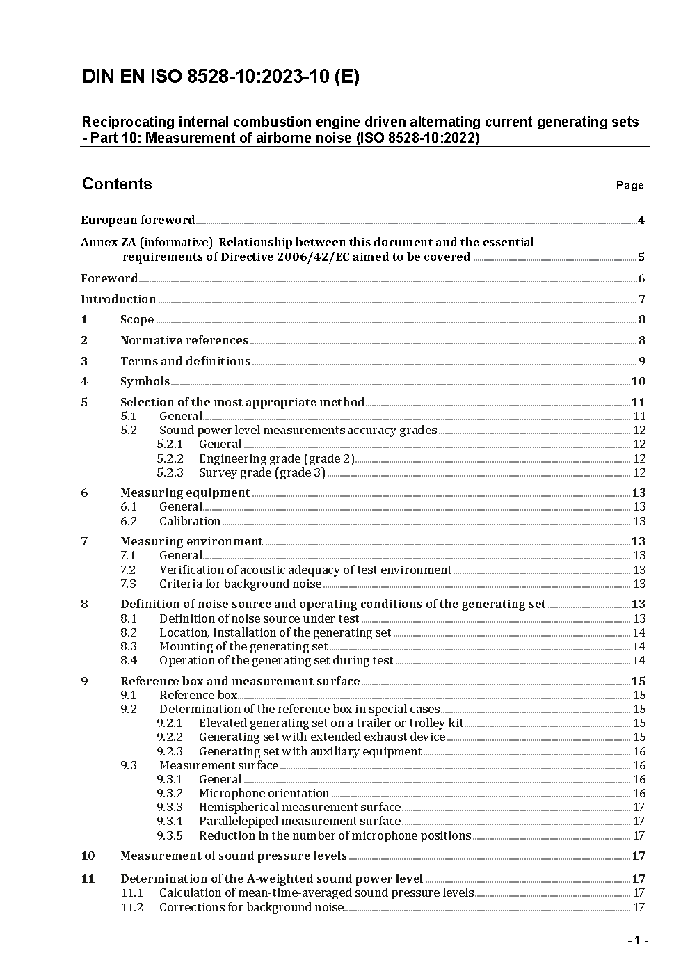 Reciprocating internal combustion engine driven current generating sets - Part 10: Measurement of airbone noise by the enveloping surface method (ISO/DIS 8528-10:2021); German and English version prEN ISO 8528-10:2021