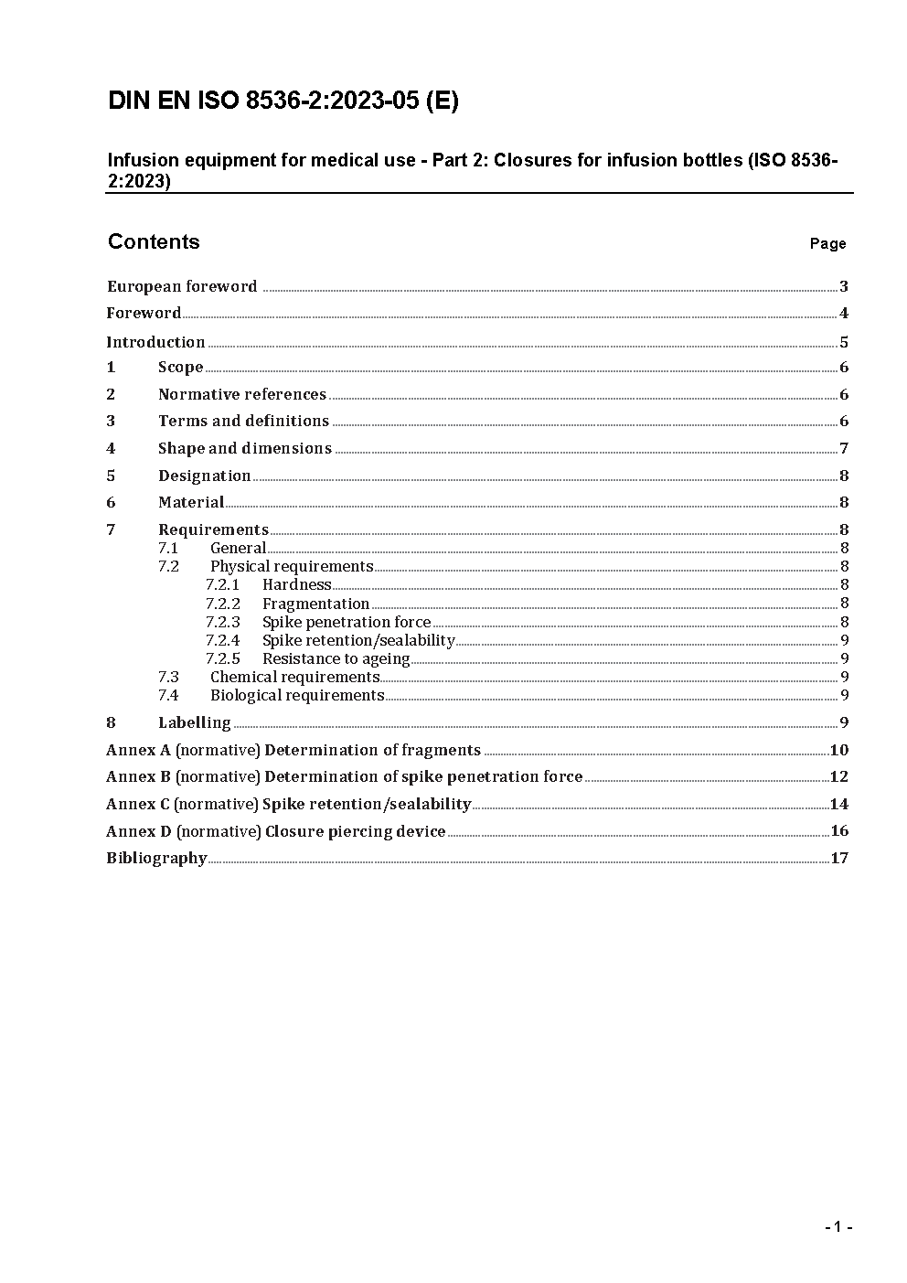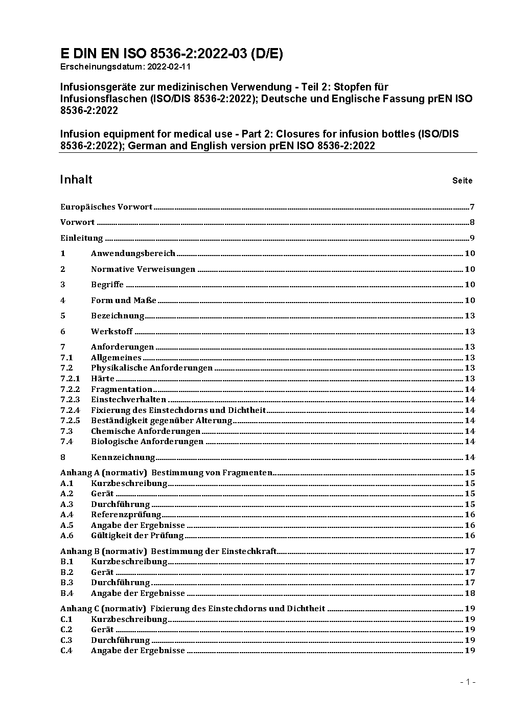 Infusion equipment for medical use - Part 2: Closures for infusion bottles (ISO 8536-2:2010); German version EN ISO 8536-2:2010