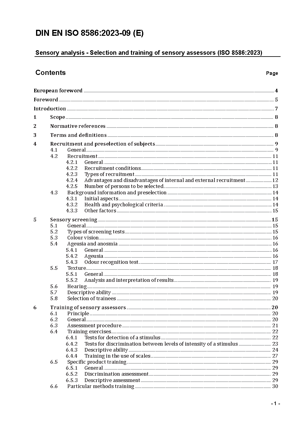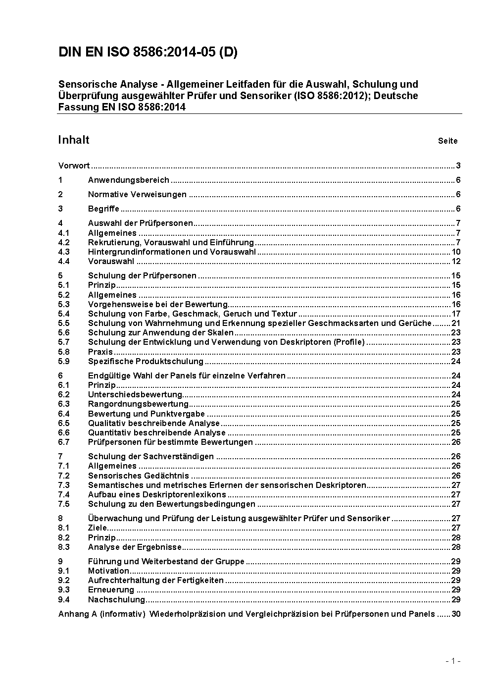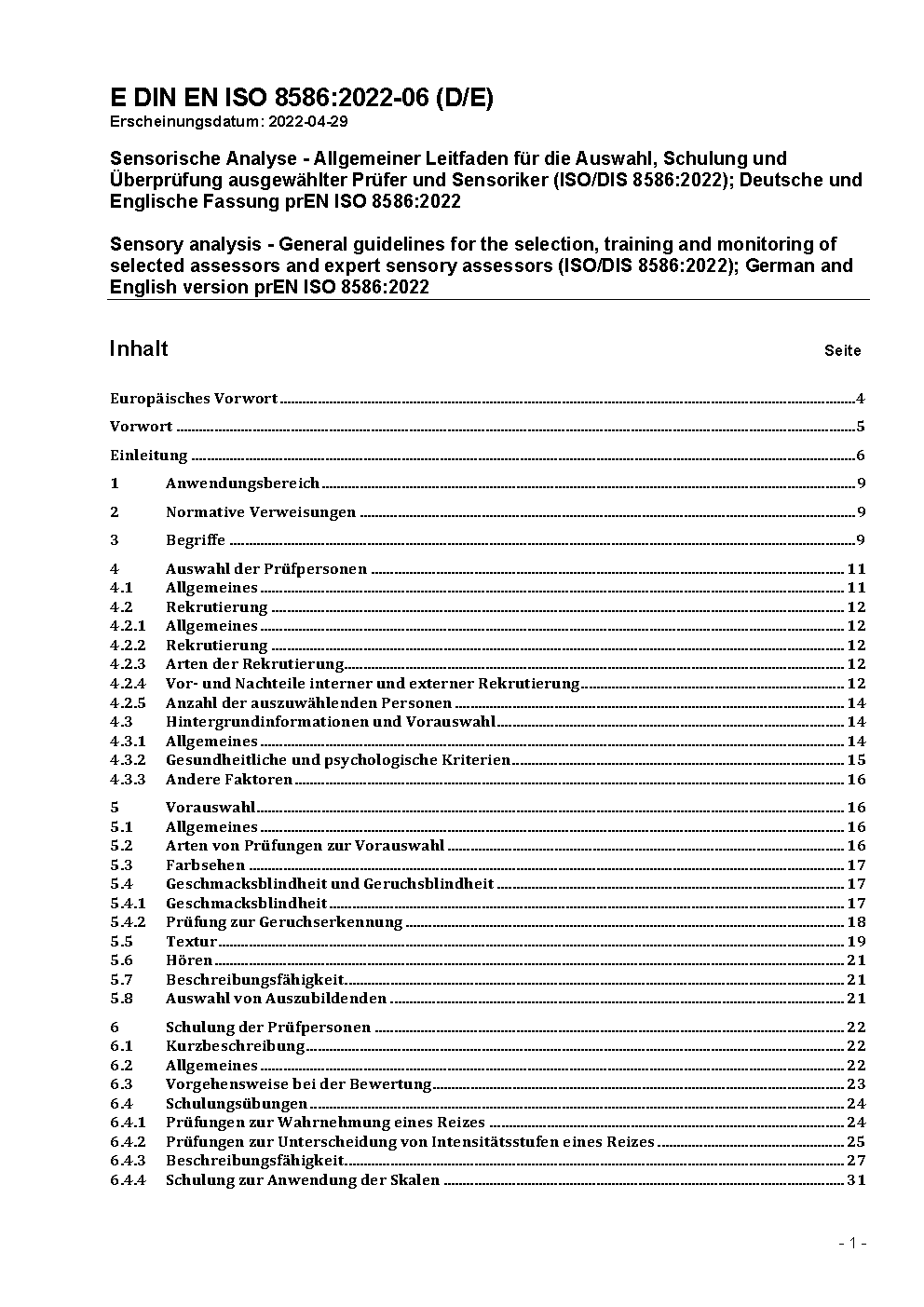 Sensorische Analyse - Auswahl und Schulung von Prüfpersonen (ISO 8586:2023); Deutsche Fassung EN ISO 8586:2023