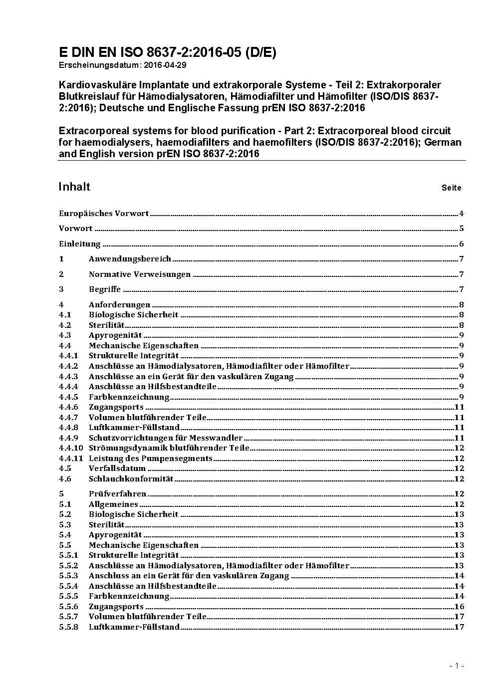 Extracorporeal systems for blood purification - Part 2: Extracorporeal blood circuit for haemodialysers, haemodiafilters and haemofilters (ISO 8637-2:2018); German version EN ISO 8637-2:2018