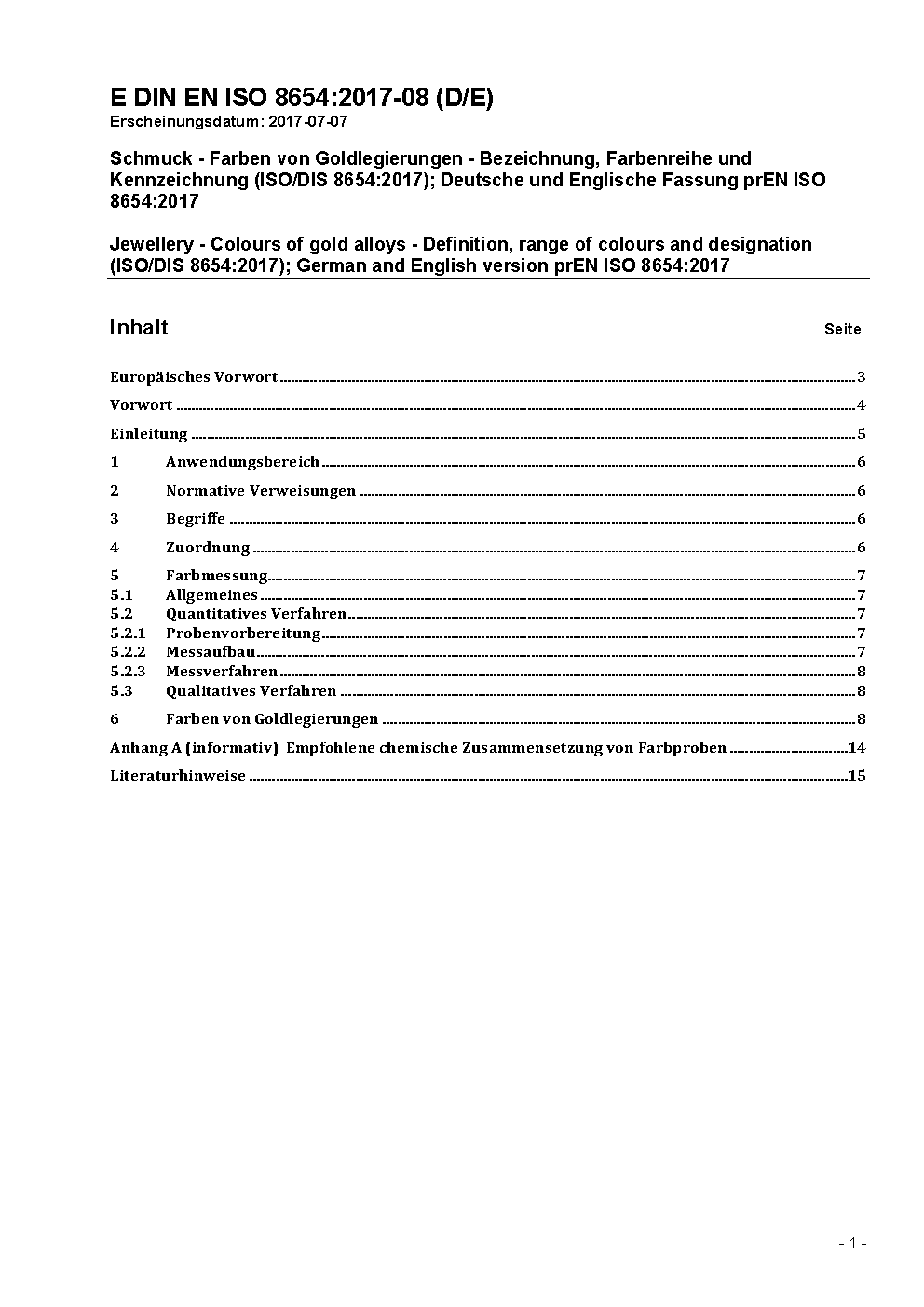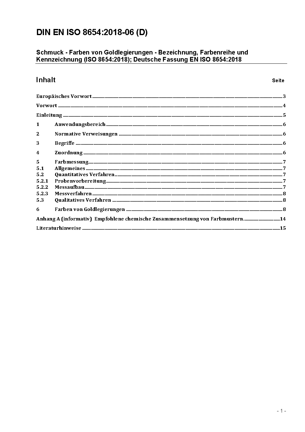 Schmuck - Farben von Goldlegierungen - Bezeichnung, Farbenreihe und Kennzeichnung (ISO 8654:2018 + Amd 1:2019); Deutsche Fassung EN ISO 8654:2018 + A1:2019