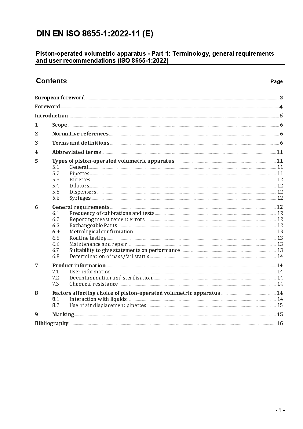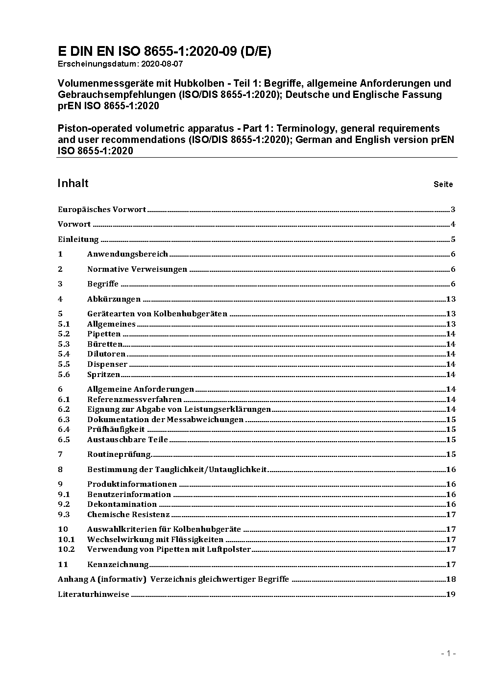Piston-operated volumetric apparatus - Part 1: Terminology, general requirements and user recommendations (ISO 8655-1:2002); German version EN ISO 8655-1:2002