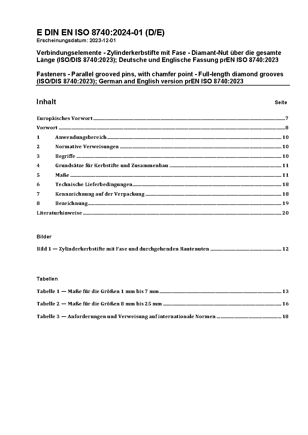 Zylinderkerbstifte mit Fase (ISO 8740:1997); Deutsche Fassung EN ISO 8740:1997