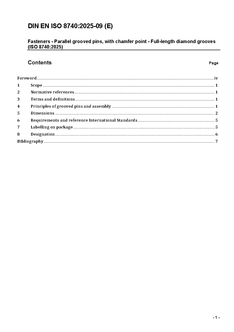 Grooved pins - Full-length parallel grooved, with chamfer (ISO 8740:1997); German version EN ISO 8740:1997