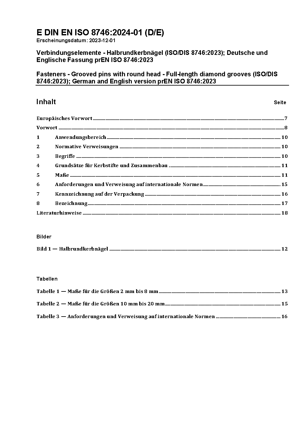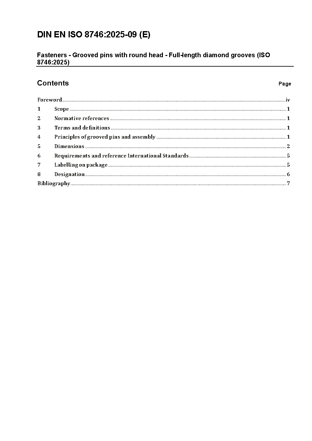 Fasteners - Grooved pins with round head - Full-length diamond grooves (ISO 8746:2025); German version EN ISO 8746:2025