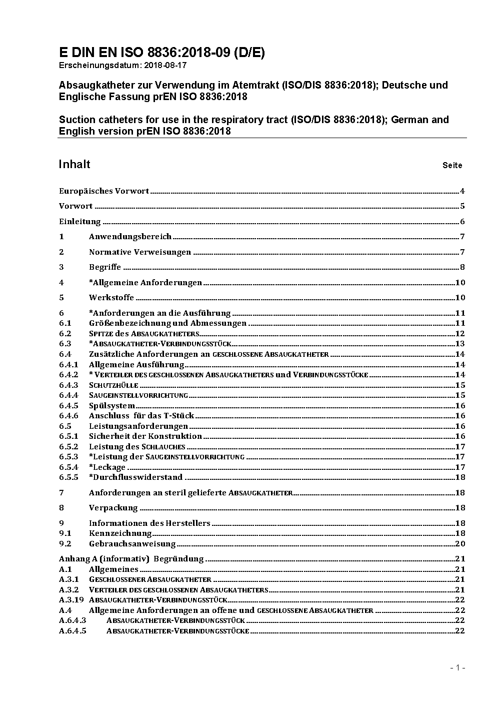 Anaesthetic and respiratory equipment - Suction catheters for use in the respiratory tract (ISO/DIS 8836:2026); German and English version prEN ISO 8836:2026