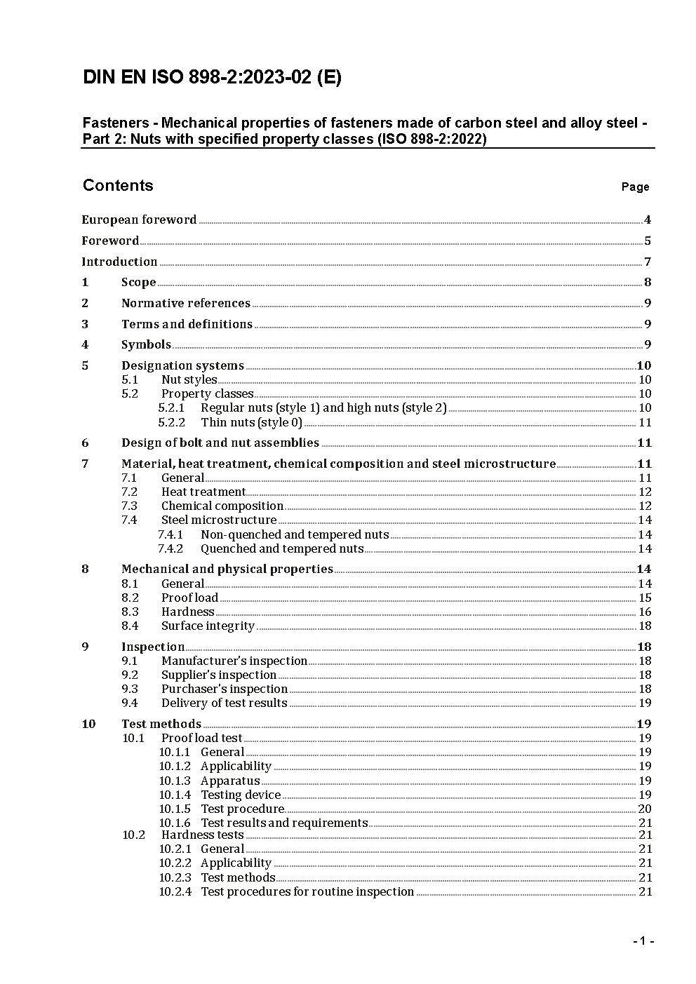 Fasteners - Mechanical properties of fasteners made of carbon steel and alloy steel - Part 2: Nuts with specified property classes (ISO 898-2:2022); German version EN ISO 898-2:2022