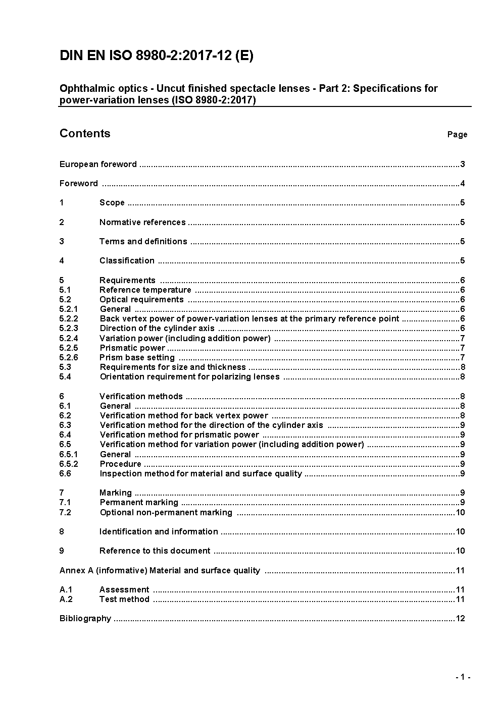 Ophthalmic optics - Uncut finished spectacle lenses - Part 2: Specifications for progressive power lenses (ISO 8980-2:2004); German version EN ISO 8980-2:2004
