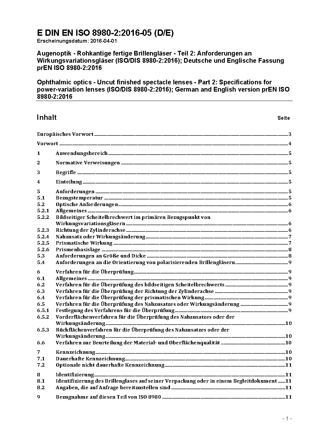 Augenoptik - Rohkantige fertige Brillengläser - Teil 2: Anforderungen an Gleitsicht-Brillengläser (ISO 8980-2:2004); Deutsche Fassung EN ISO 8980-2:2004