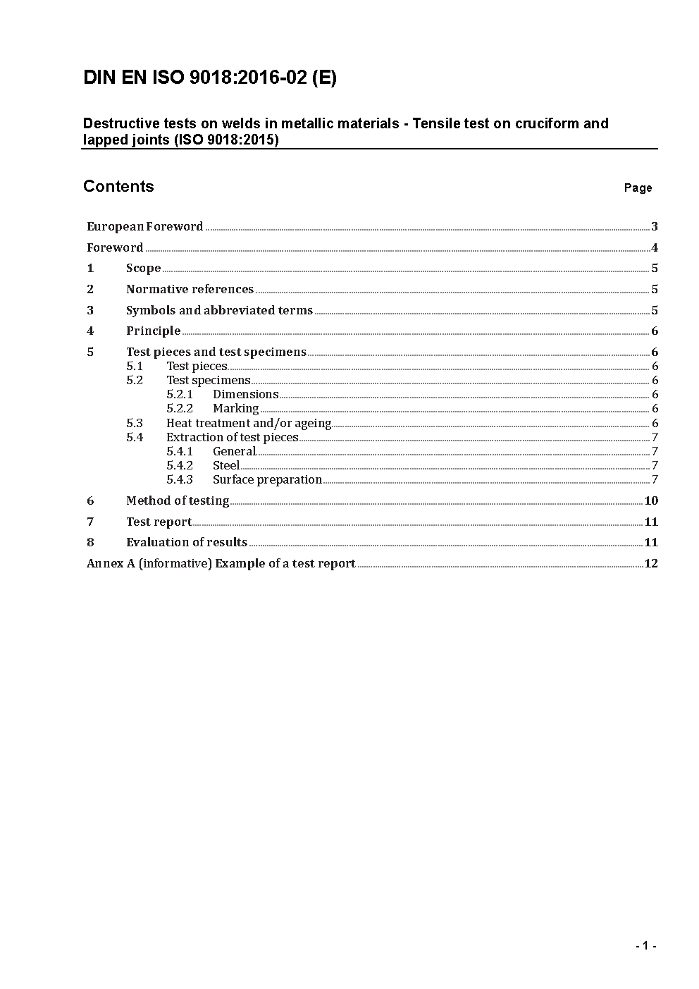 Destructive tests on welds in metallic materials - Tensile test on cruciform and lapped joints (ISO 9018:2003); German version EN ISO 9018:2003