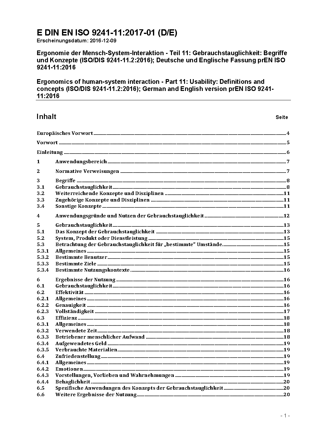 Ergonomic requirements for office work with visual display terminals (VDTs) - Part 11: Guidance on usability (ISO/DIS 9241-11:1995); German version prEN ISO 9241-11:1995