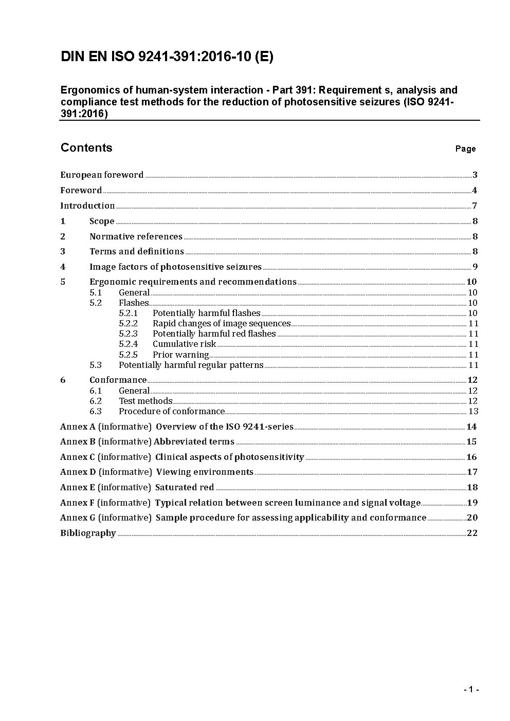Ergonomics of human-system interaction - Part 391: Requirements, analysis and compliance test methods for the reduction of photosensitive seizures (ISO/DIS 9241-391:2014); German version prEN ISO 9241-391:2014