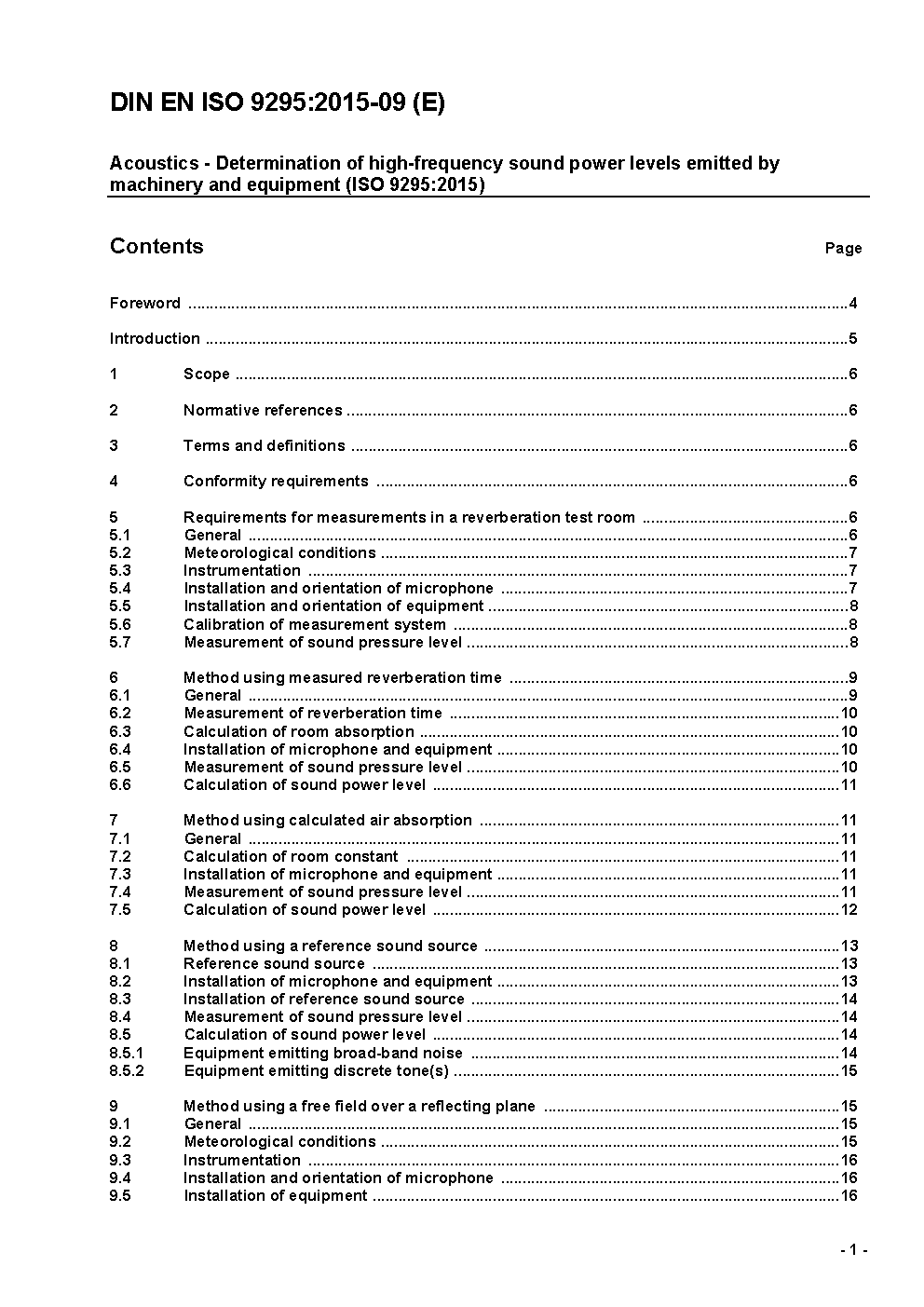 Akustik - Bestimmung der hochfrequenten Schallleistungspegel von Maschinen und Geräten (ISO/DIS 9295:2013); Deutsche Fassung prEN ISO 9295:2013