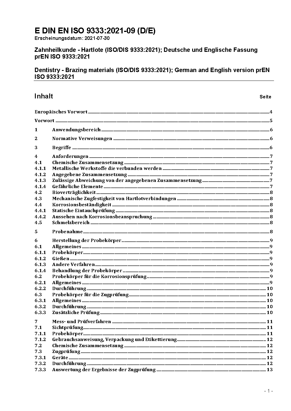 Dentistry - Brazing materials (ISO 9333:2006); German version EN ISO 9333:2006