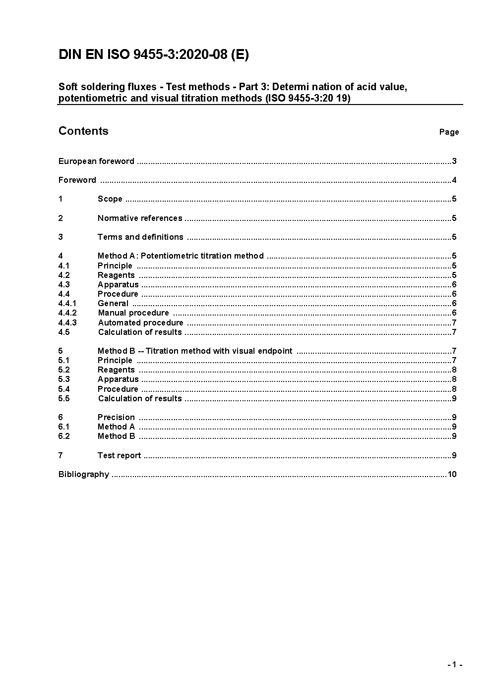 Soft soldering fluxes - Test methods - Part 3: Determination of acid value, potentiometric and visual titration methods (ISO 9455-3:1992); German version EN ISO 9455-3:1994