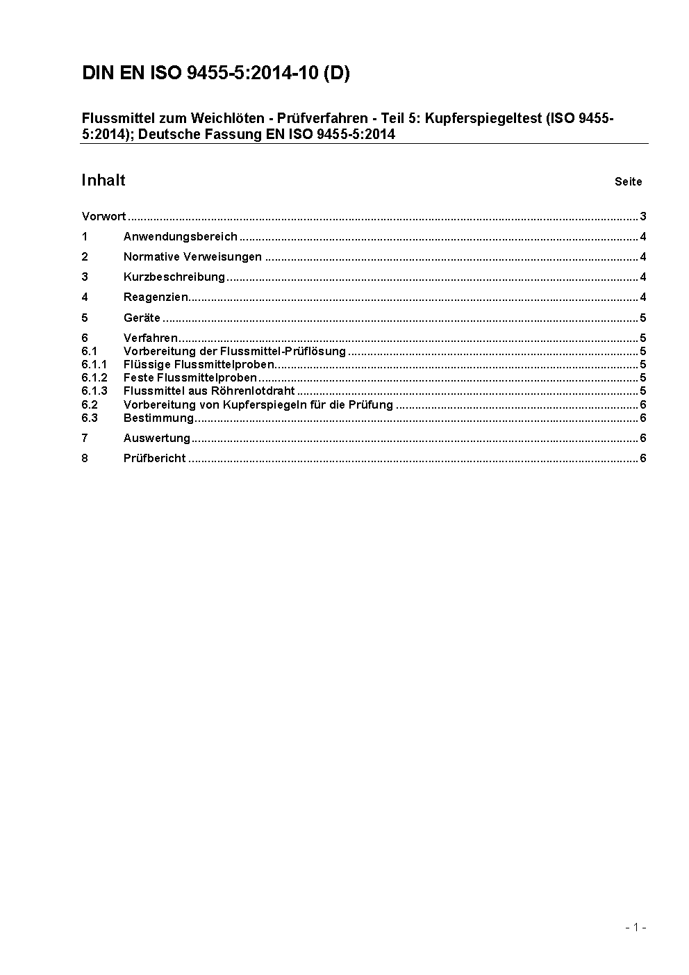 Flussmittel zum Weichlöten - Prüfverfahren - Teil 5: Kupferspiegeltest (ISO 9455-5:2014); Deutsche Fassung EN ISO 9455-5:2014