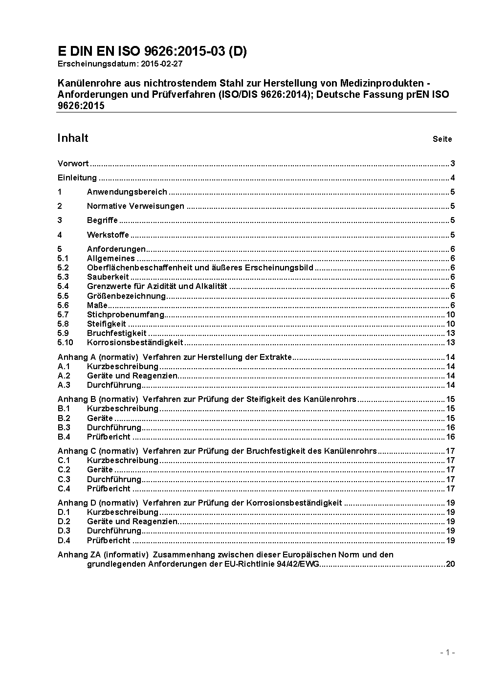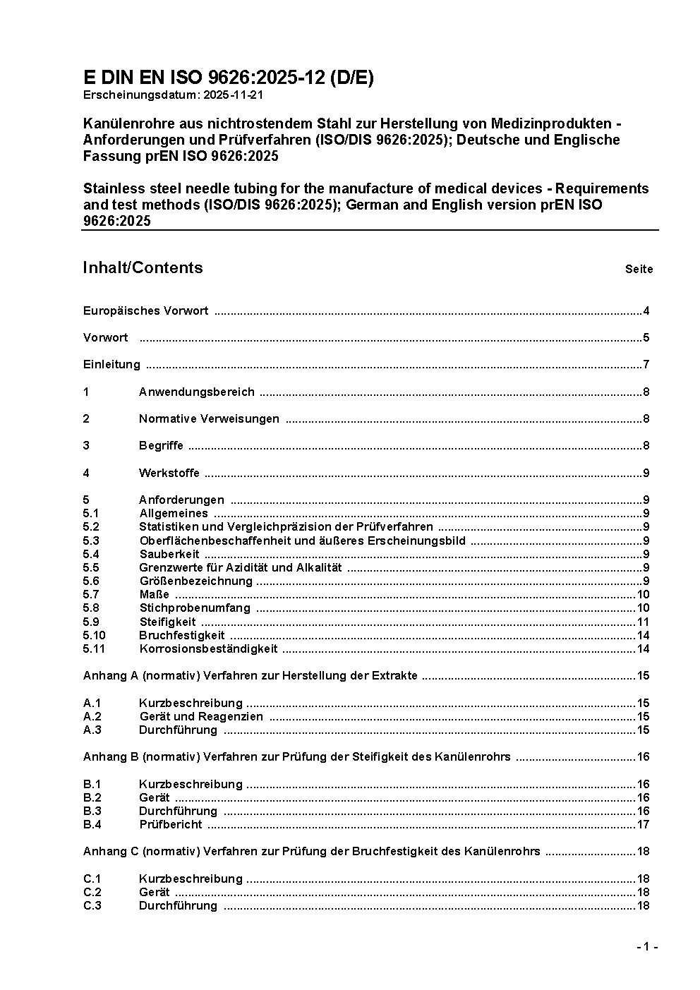 Kanülenrohre aus nichtrostendem Stahl zur Herstellung von Medizinprodukten (ISO 9626:1991); Deutsche Fassung EN ISO 9626:1995