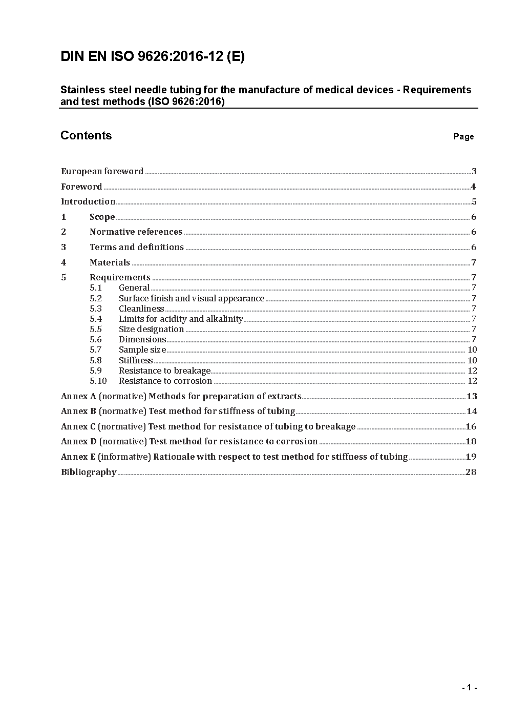 Stainless steel needle tubing for manufacture of medical devices (ISO 9626:1991); German version EN ISO 9626:1995