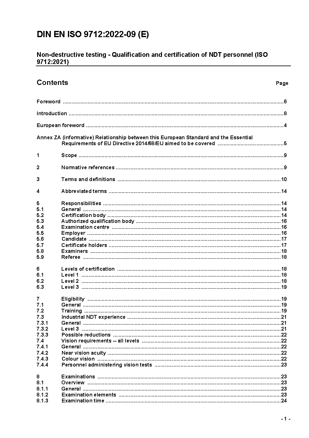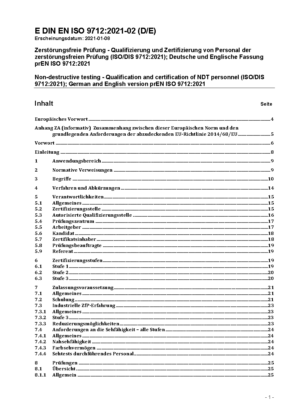 Zerstörungsfreie Prüfung - Qualifizierung und Zertifizierung von Personal der zerstörungsfreien Prüfung (ISO 9712:2012); Deutsche Fassung EN ISO 9712:2012