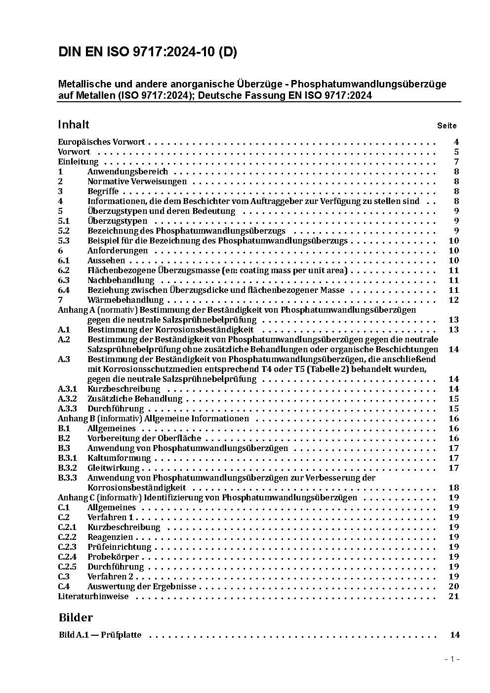Metallic and other inorganic coatings - Phosphate conversion coating of metals (ISO/DIS 9717:2016); German and English version prEN ISO 9717:2016