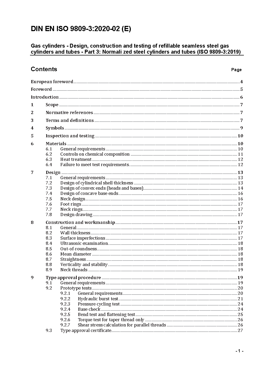 Gas cylinders - Design, construction and testing of refillable seamless steel gas cylinders and tubes - Part 3: Normalized steel cylinders and tubes (ISO/DIS 9809-3:2018); German and English version prEN ISO 9809-3:2018