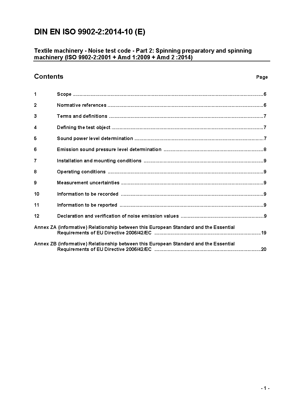 Textilmaschinen - Geräuschmessverfahren - Teil 2: Spinnereivorbereitungs- und Spinnmaschinen (ISO 9902-2:2001 + Amd 1:2009); Deutsche Fassung EN ISO 9902-2:2001 + A1:2009 / Achtung: Daneben gilt DIN EN ISO 9902-2 (2001-07) noch bis 2009-12-28.*Übergangsfrist, festgelegt durch DIN EN ISO 9902-2 (2014-10), bis 2014-12-31 beachten.
