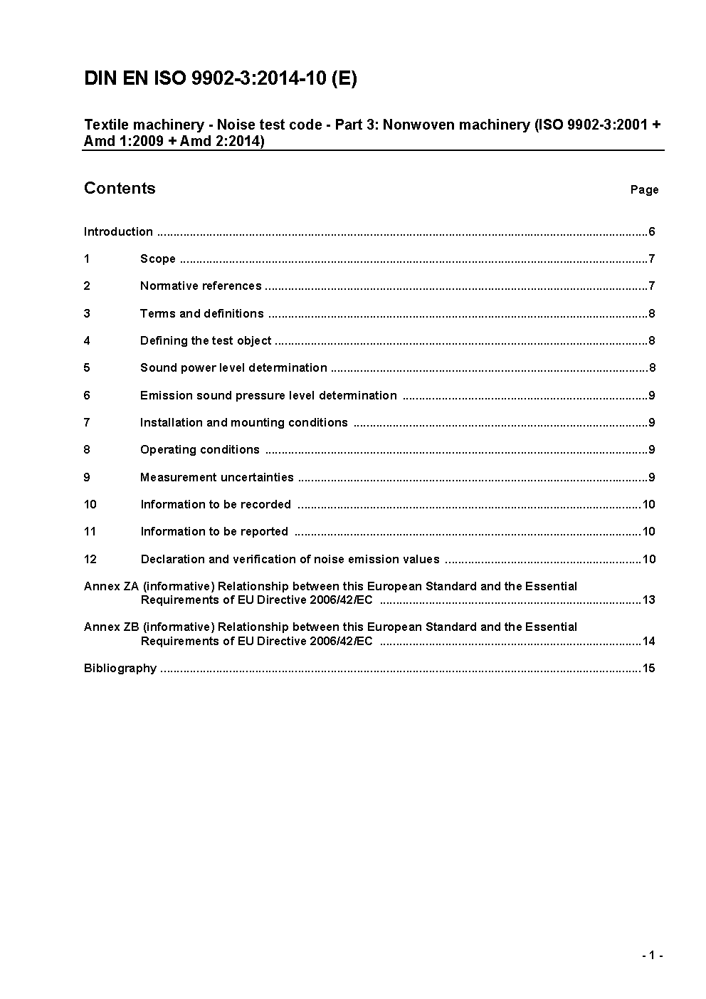 Textilmaschinen - Bestimmung der Geräuschemission - Teil 3: Vliesstoffmaschinen (ISO/DIS 9902-3:1999); Deutsche Fassung prEN ISO 9902-3:1999