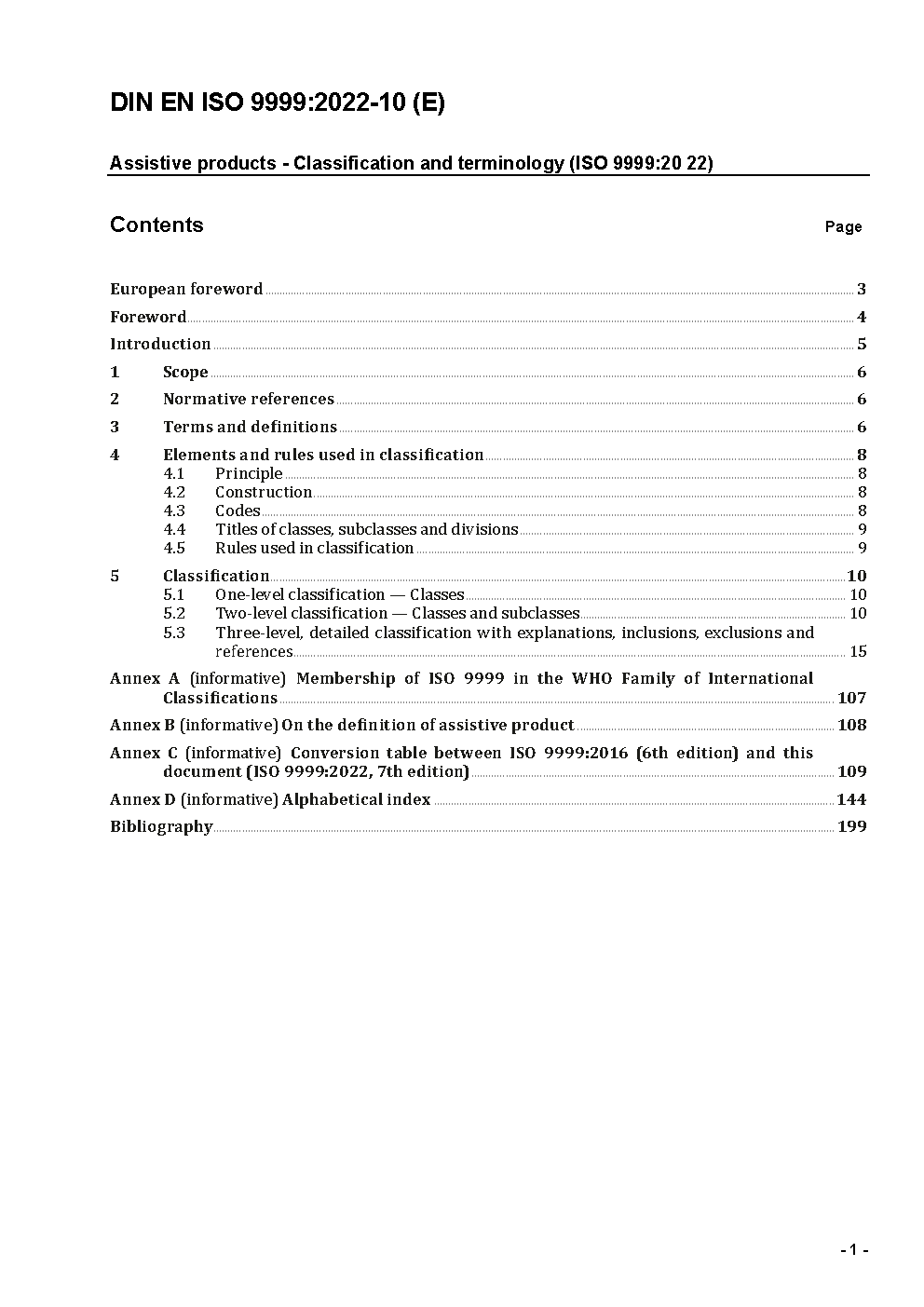 Technical aids for disabled persons - Classification (ISO 9999:1998); German version EN ISO 9999:1998