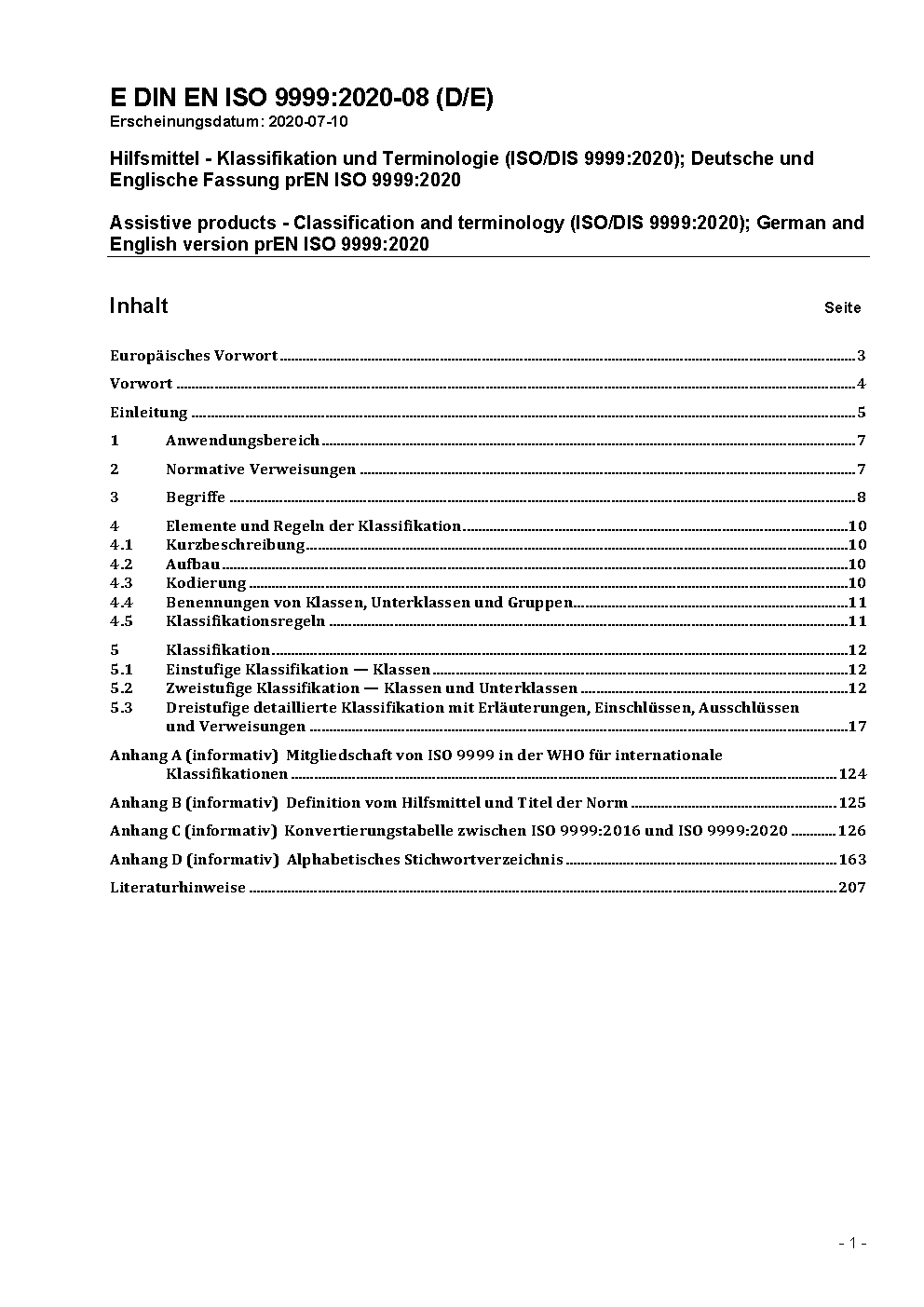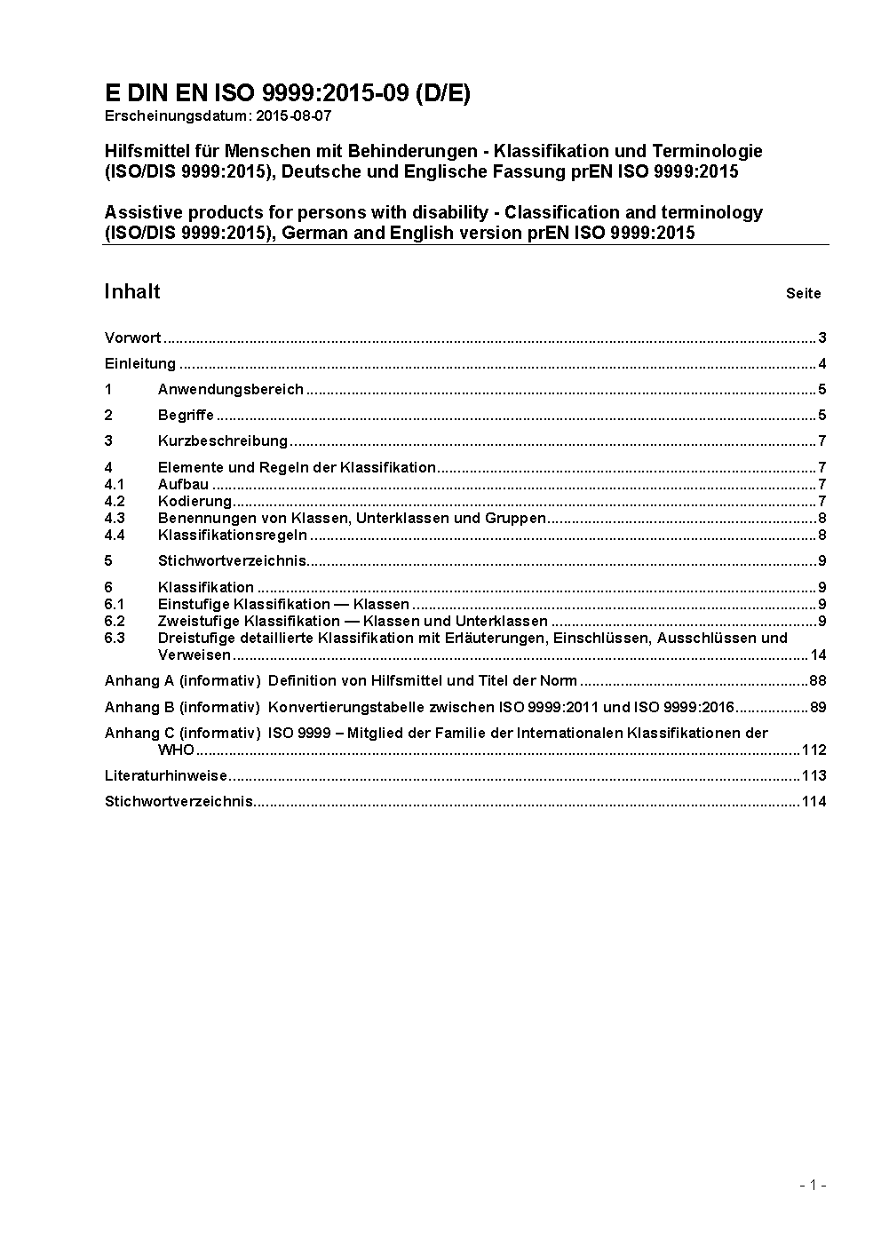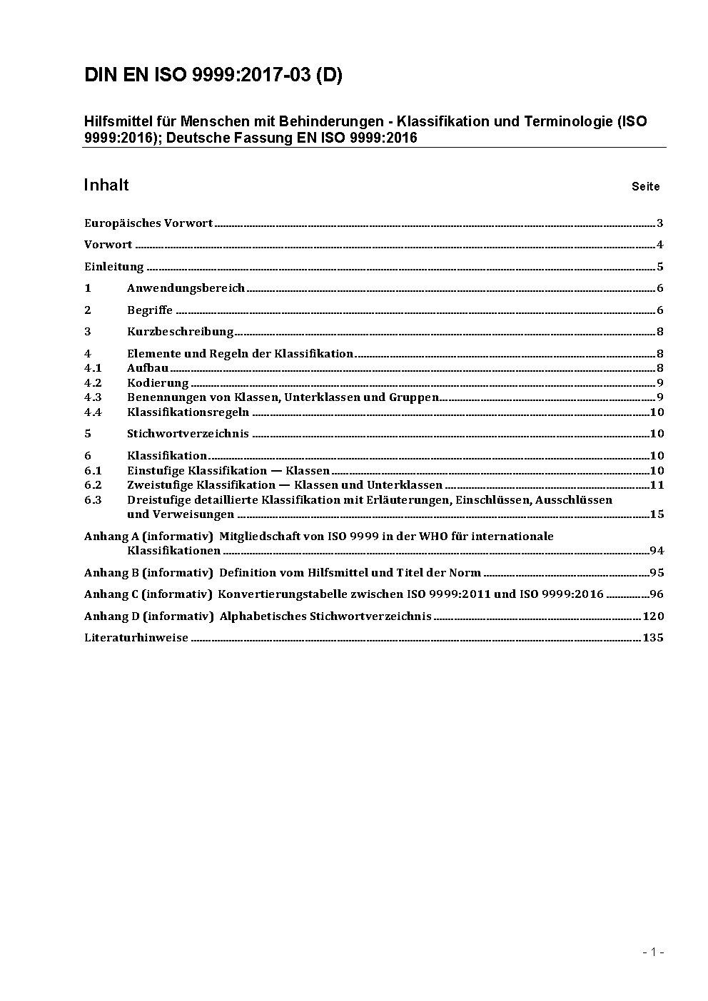 Technische Hilfen für behinderte Menschen - Klassifikation (ISO 9999:1998); Deutsche Fassung EN ISO 9999:1998
