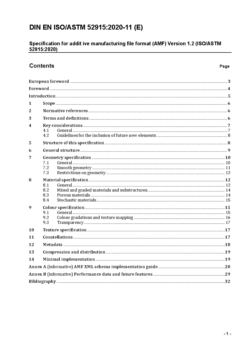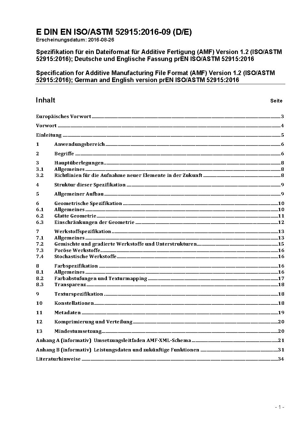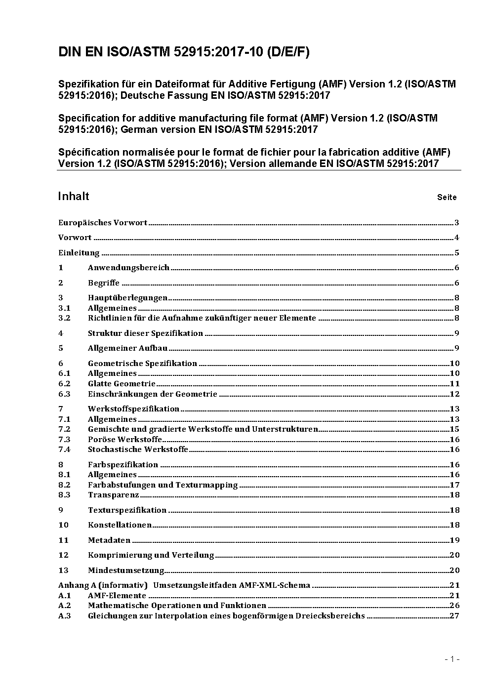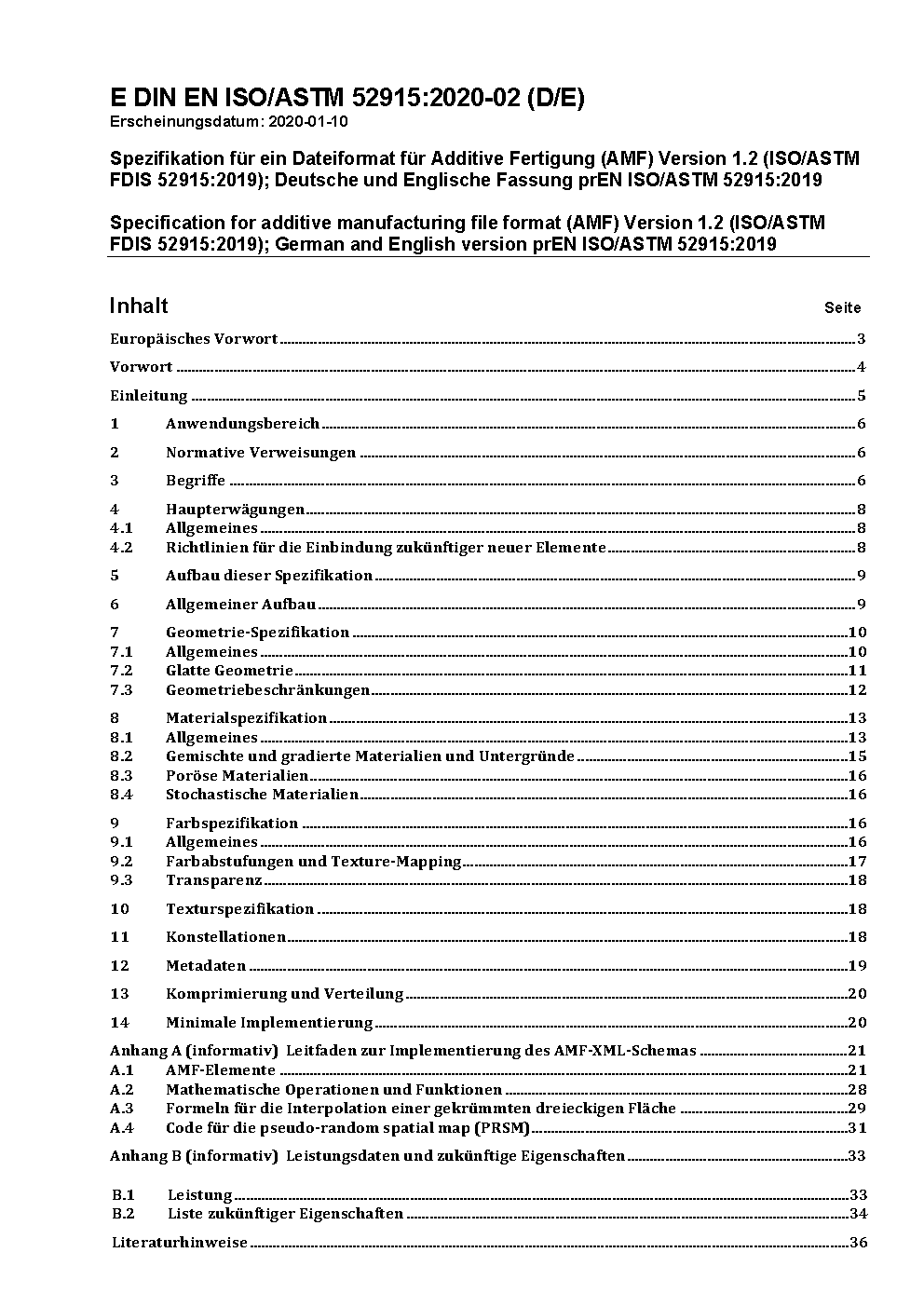 Specification for additive manufacturing file format (AMF) Version 1.2 (ISO/ASTM 52915:2020); German version EN ISO/ASTM 52915:2020
