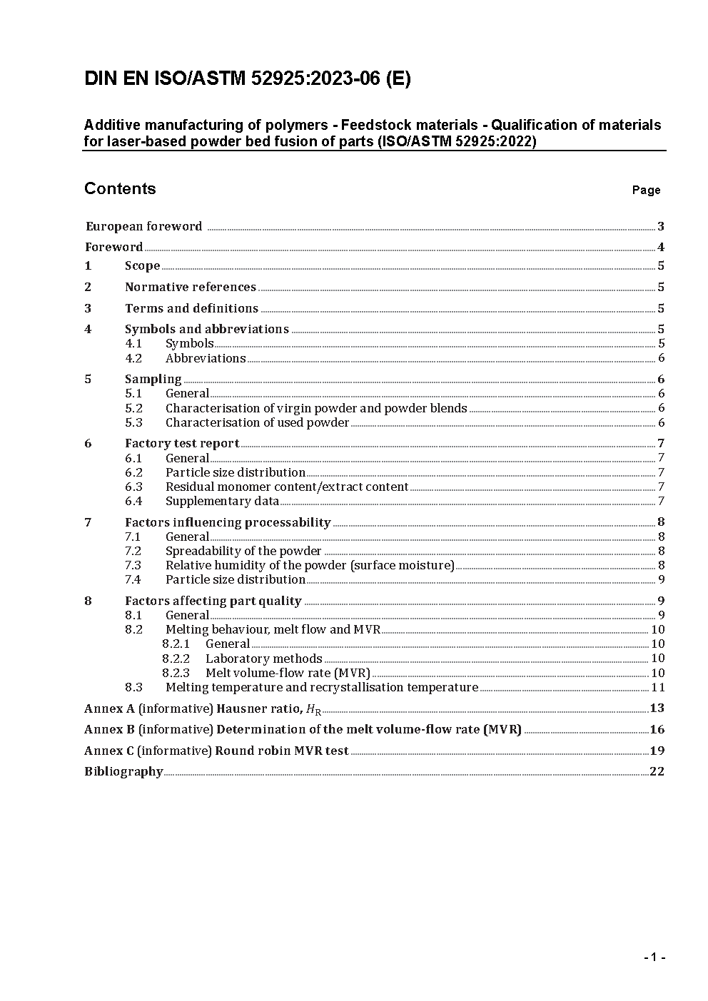 Additive manufacturing of polymers - Feedstock materials - Qualification of materials for laser-based powder bed fusion of parts (ISO/ASTM 52925:2022); German version EN ISO/ASTM 52925:2022