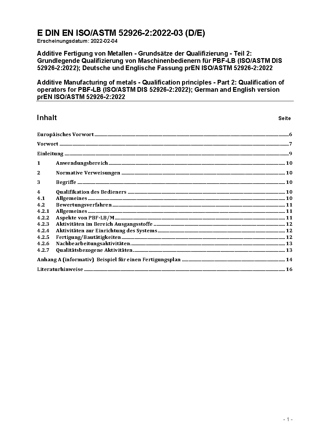 Additive Manufacturing of metals - Qualification principles - Part 2: Qualification of operators for PBF-LB (ISO/ASTM 52926-2:2023); German version EN ISO/ASTM 52926-2:2023