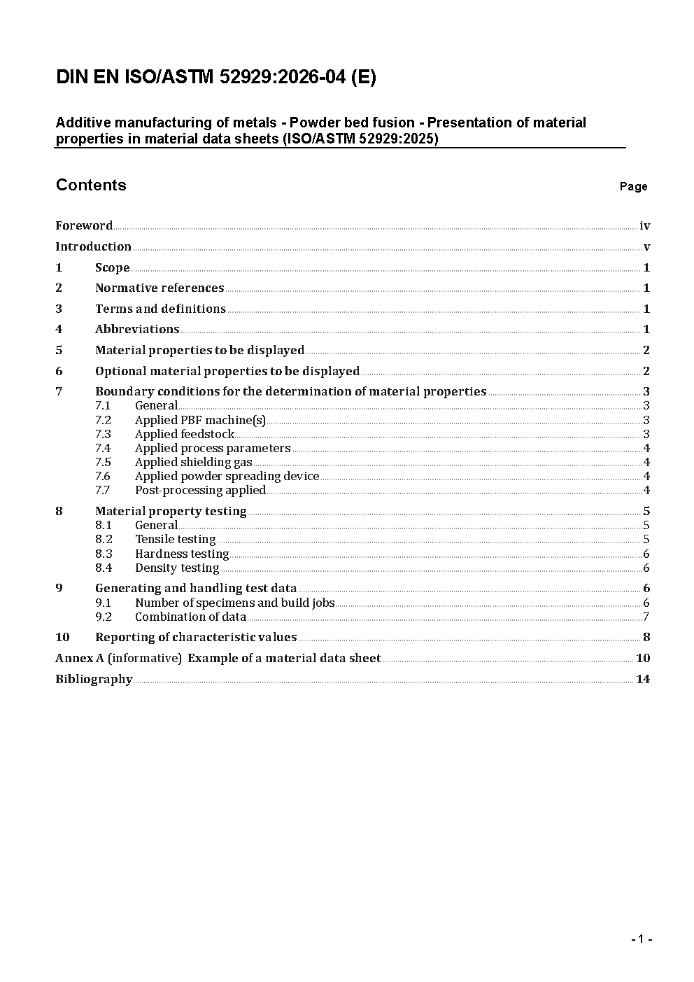Additive manufacturing of metals - Powder bed fusion - Presentation of material properties in material data sheets (ISO/ASTM DIS 52929:2023); German and English version prEN ISO/ASTM 52929:2023