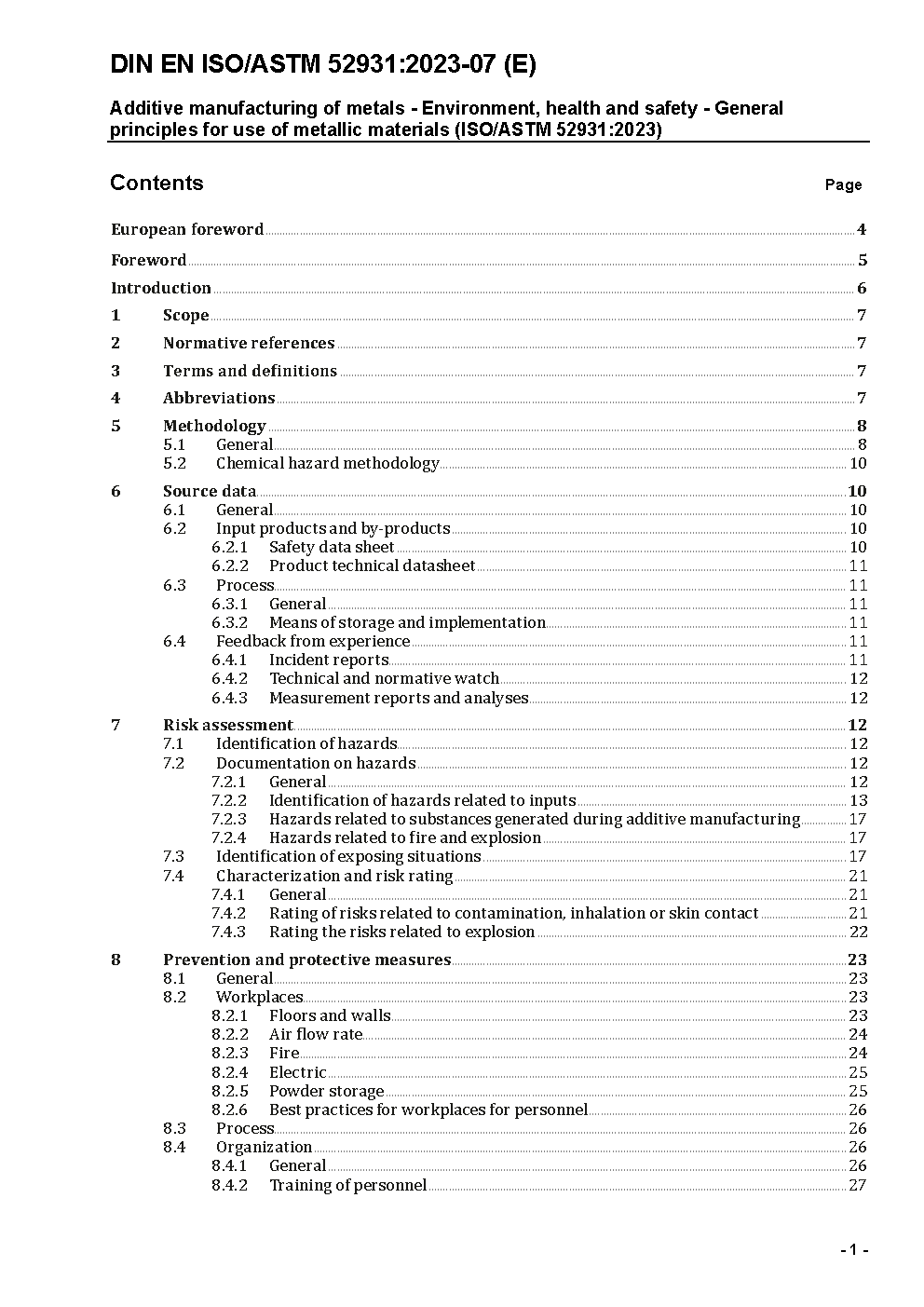 Additive manufacturing of metals - Environment, health and safety - General principles for use of metallic materials (ISO/ASTM 52931:2023); German version EN ISO/ASTM 52931:2023