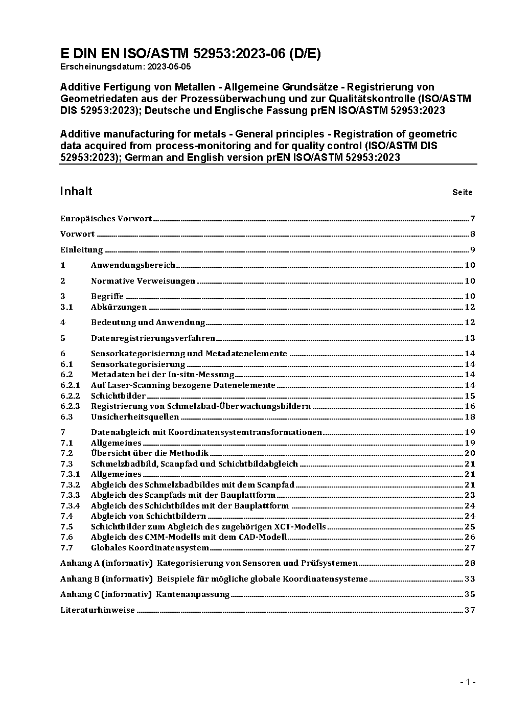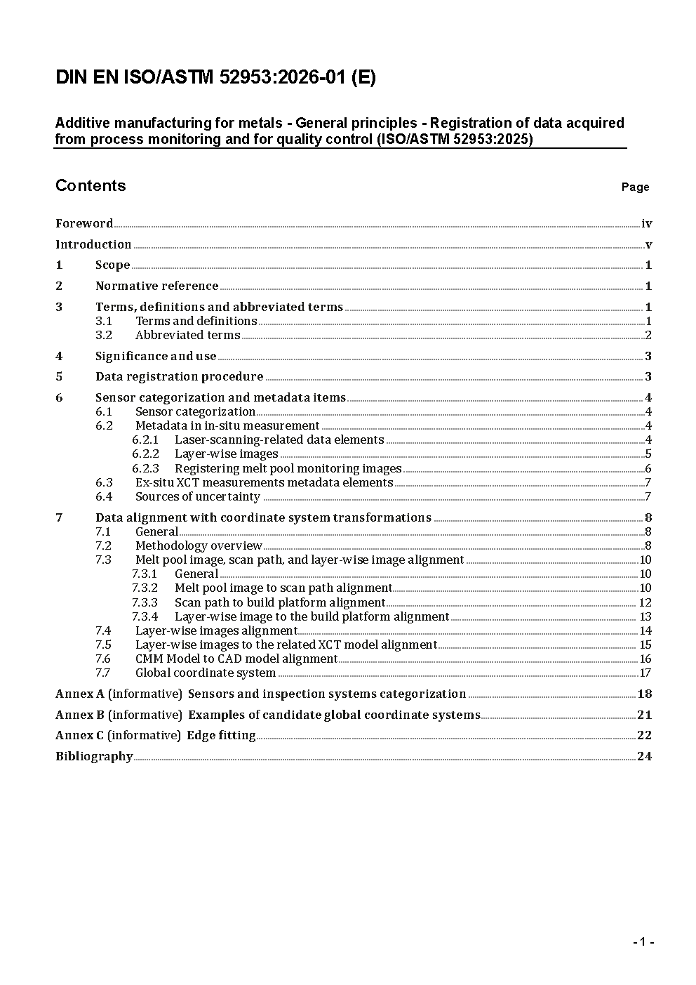 Additive Fertigung von Metallen - Allgemeine Grundsätze - Registrierung von Daten aus der Prozessüberwachung und zur Qualitätskontrolle (ISO/ASTM 52953:2025); Deutsche Fassung EN ISO/ASTM 52953:2025
