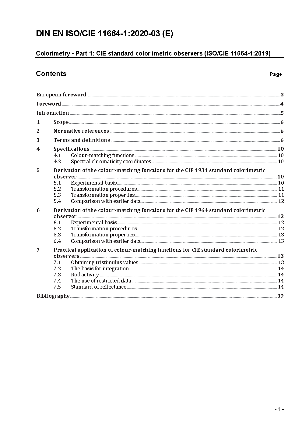 Colorimetry - Part 1: CIE standard colorimetric observers (ISO/CIE 11664-1:2019); German version EN ISO/CIE 11664-1:2019