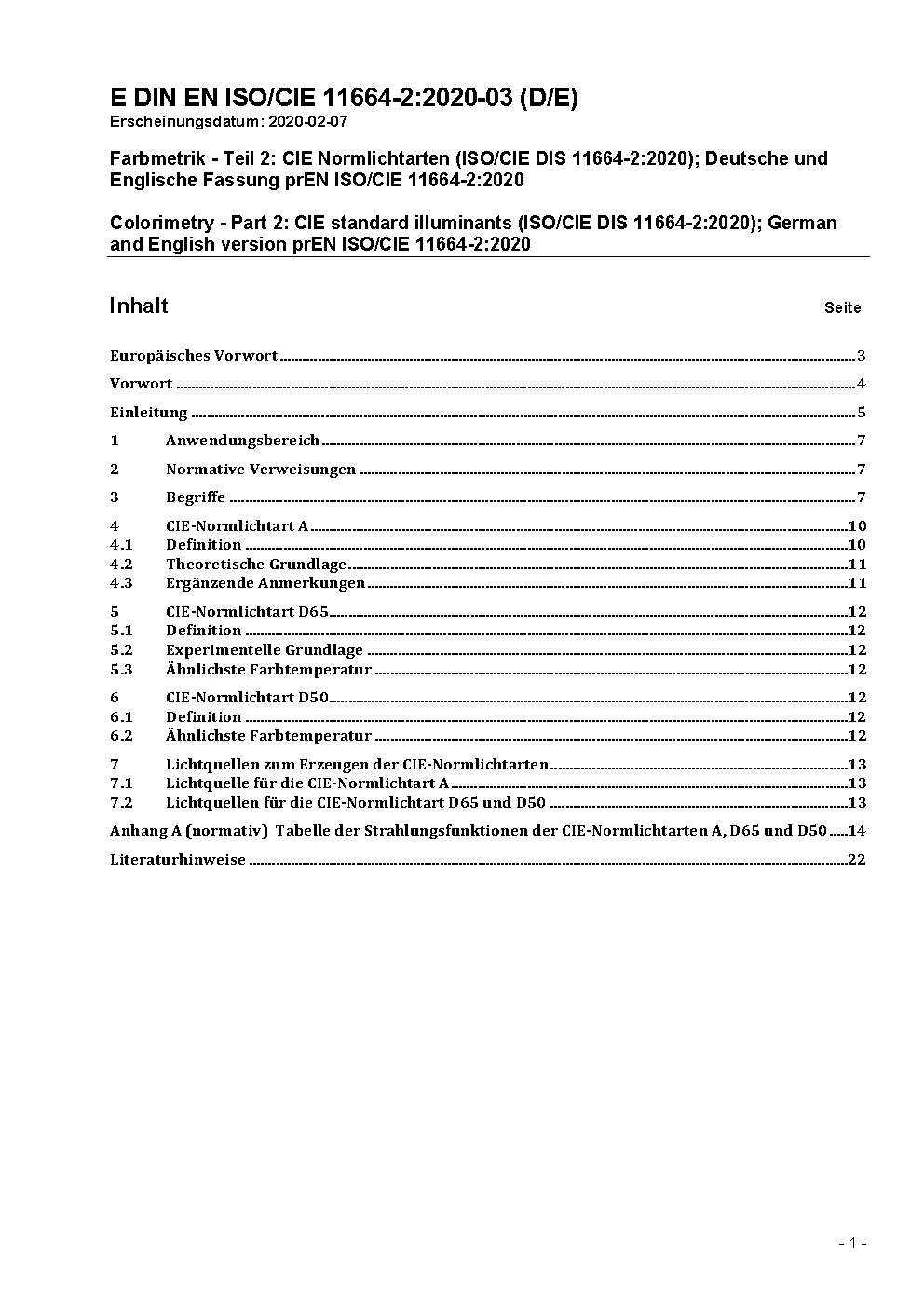 Colorimetry - Part 2: CIE standard illuminants (ISO/CIE DIS 11664-2.2:2021); German and English version prEN ISO/CIE 11664-2:2021