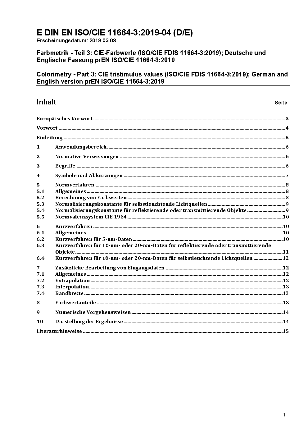 Farbmetrik - Teil 3: CIE-Farbwerte (ISO/CIE 11664-3:2019); Deutsche Fassung EN ISO/CIE 11664-3:2019