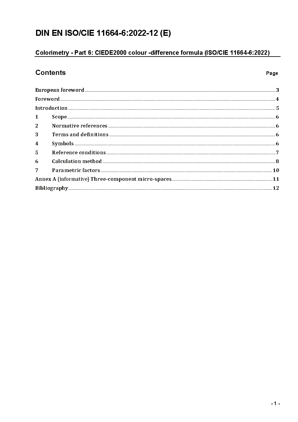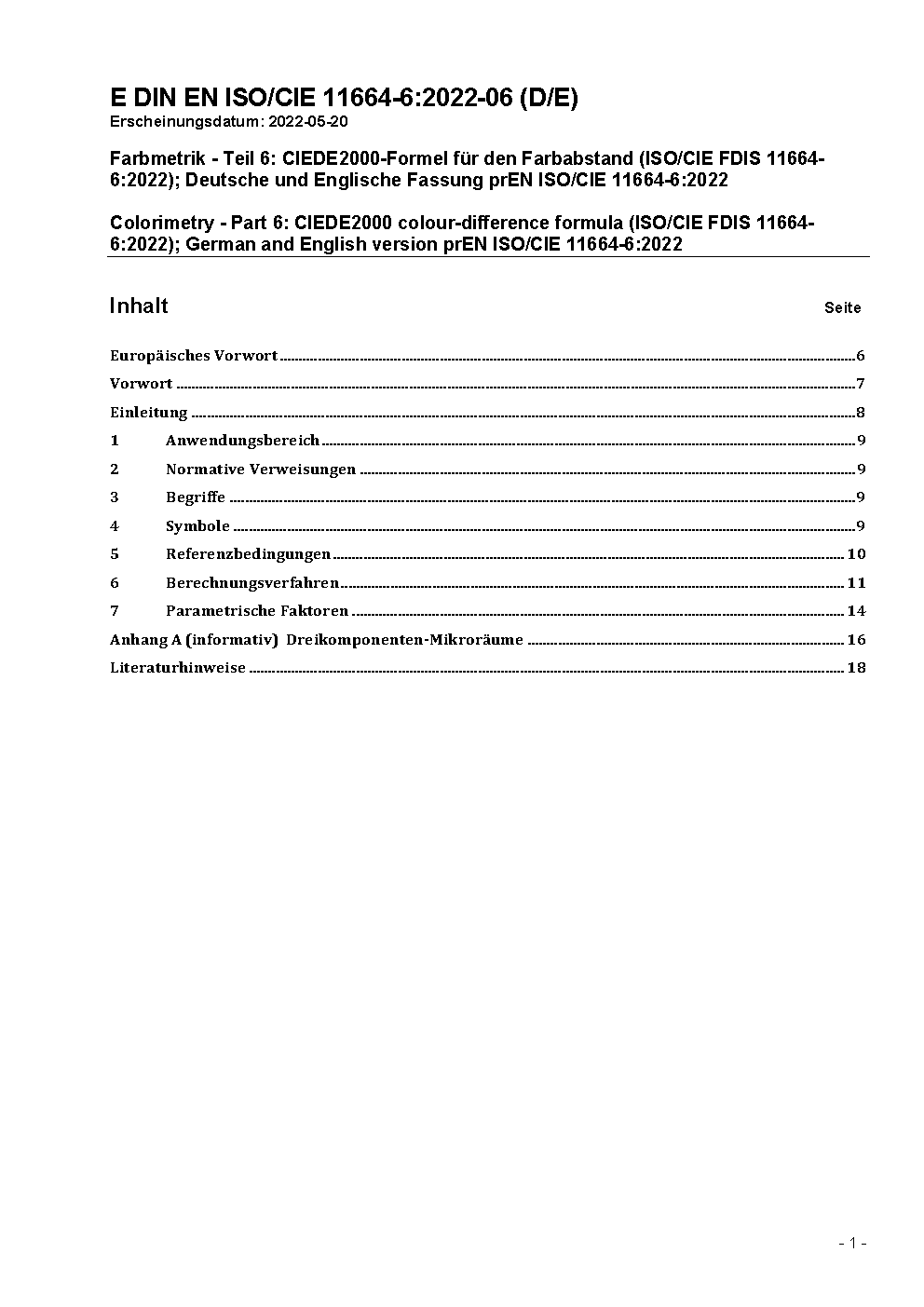 Colorimetry - Part 6: CIEDE2000 colour-difference formula (ISO/CIE 11664-6:2022); German version EN ISO/CIE 11664-6:2022