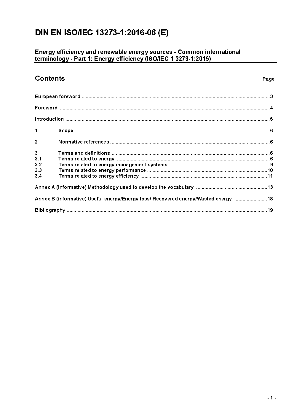 Energieeffizienz und erneuerbare Energiequellen - Gemeinsame Internationale Terminologie - Teil 1: Energieeffizienz (ISO/IEC 13273-1:2015); Deutsche und Englische Fassung FprEN ISO/IEC 13273-1:2015