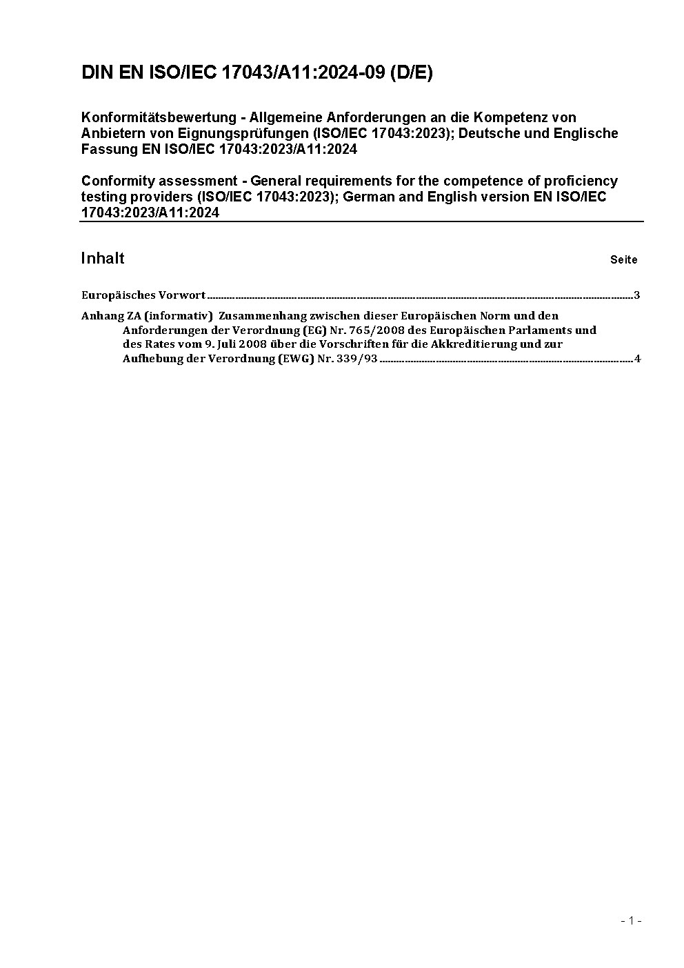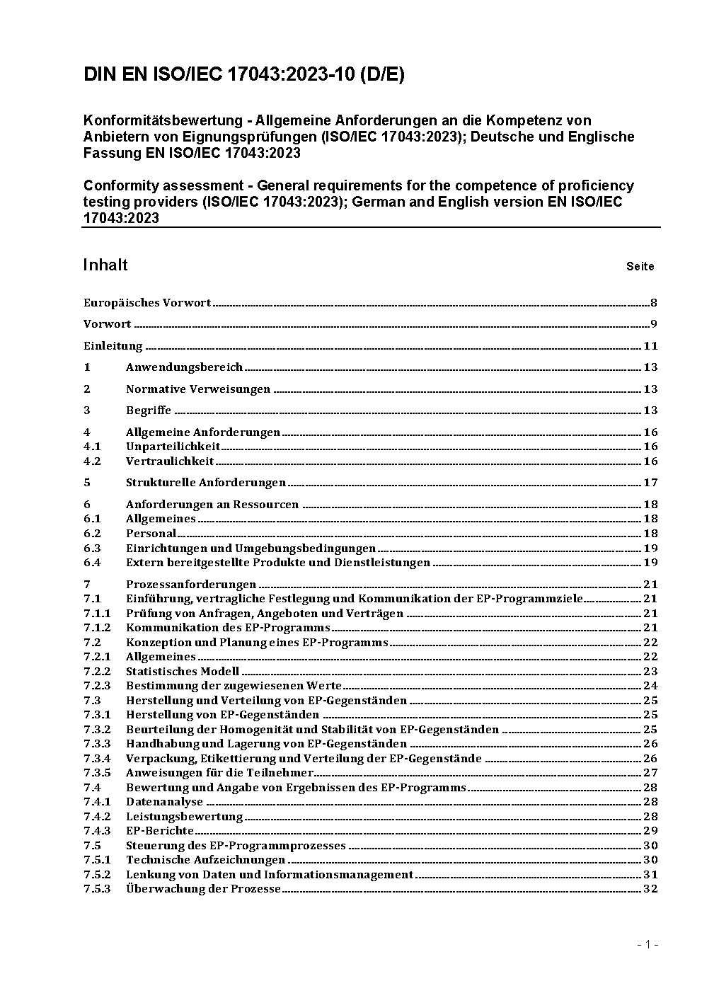 Conformity assessment - General requirements for the competence of proficiency testing providers (ISO/IEC 17043:2023); German and English version EN ISO/IEC 17043:2023